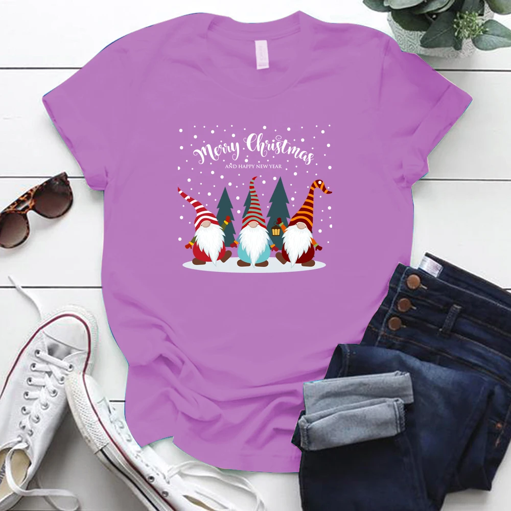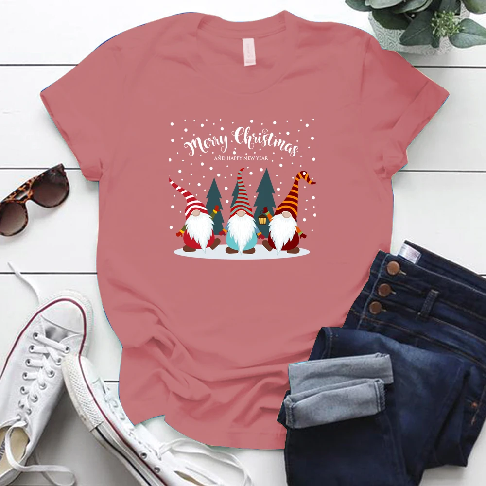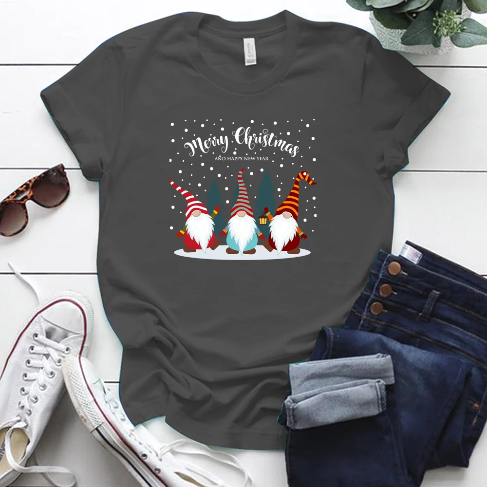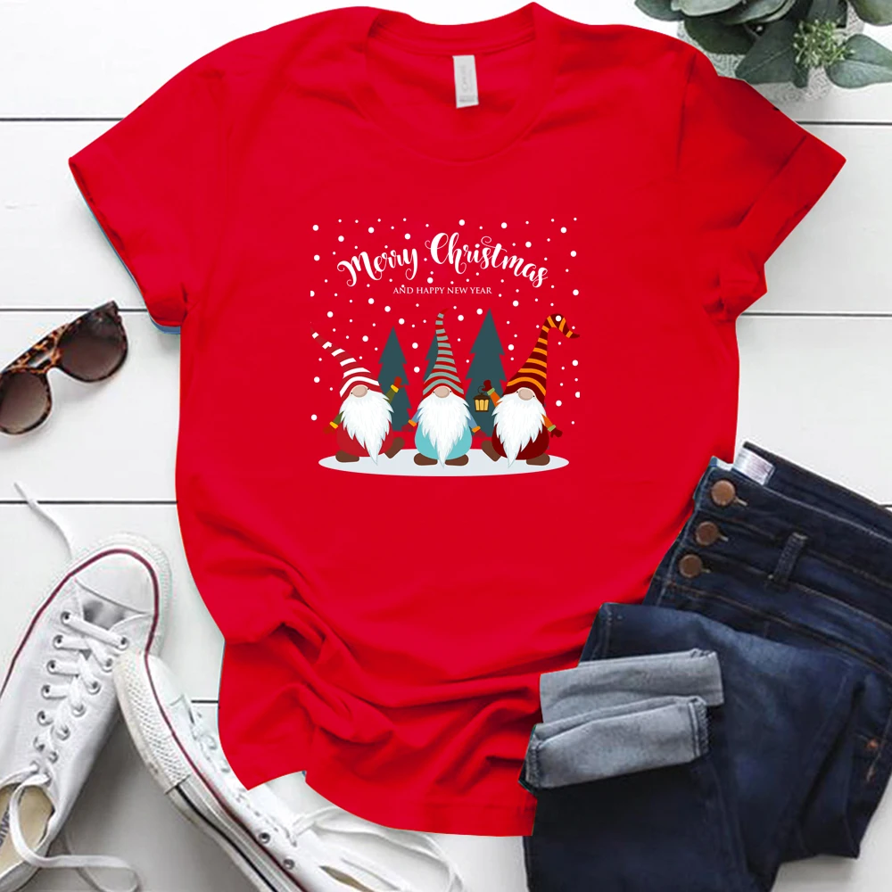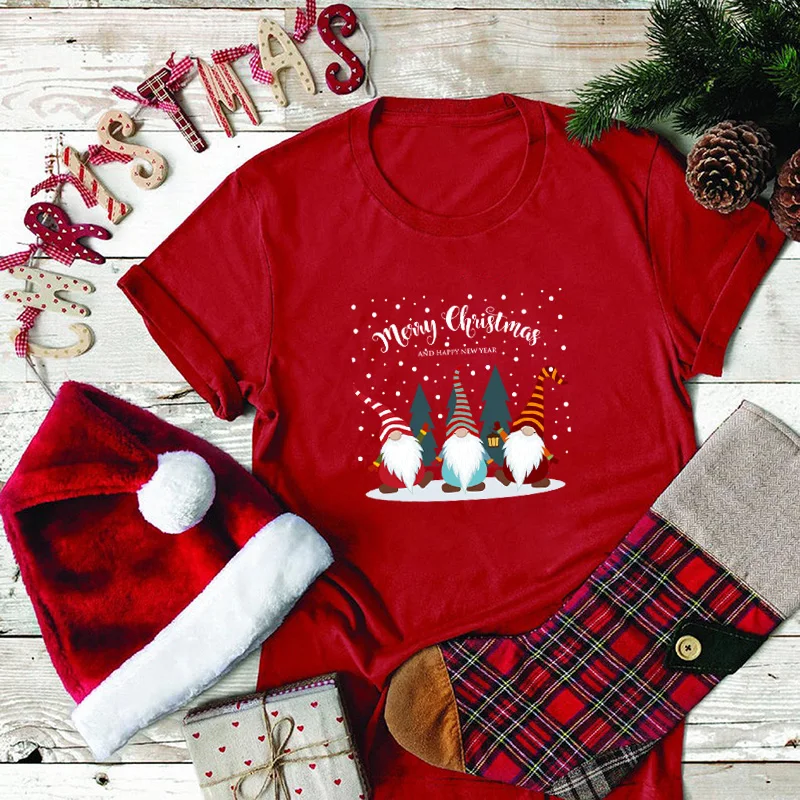 Забавные милые гномы с принтом Эстетическая Рождественская одежда с коротким рукавом Свободные женские футболки Harajuku хлопковая Футболка большого размера