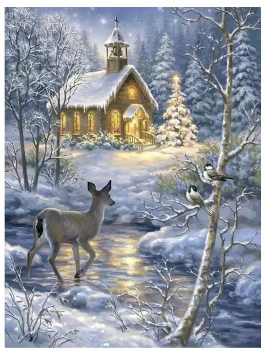 Алмазная вышивка с лосями, картина, зимняя мозаика с изображением снега, фотообои, Декор, картина-пазл, алмазная картина Dotz, большой размер