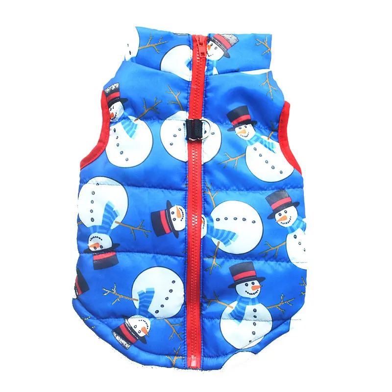 Зимнее утепленное пальто без рукавов, жилет с принтом Санта-Клауса, снежинки, Рождественская Одежда для собак, хлопковая стеганая куртка с пряжкой для щенков, синий, красный