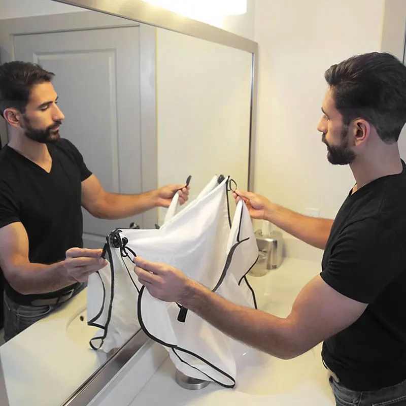 Цвет: белыйПриклеиваемая нить белого цвета Фартук для бритья, ухода за бородой белого цвета