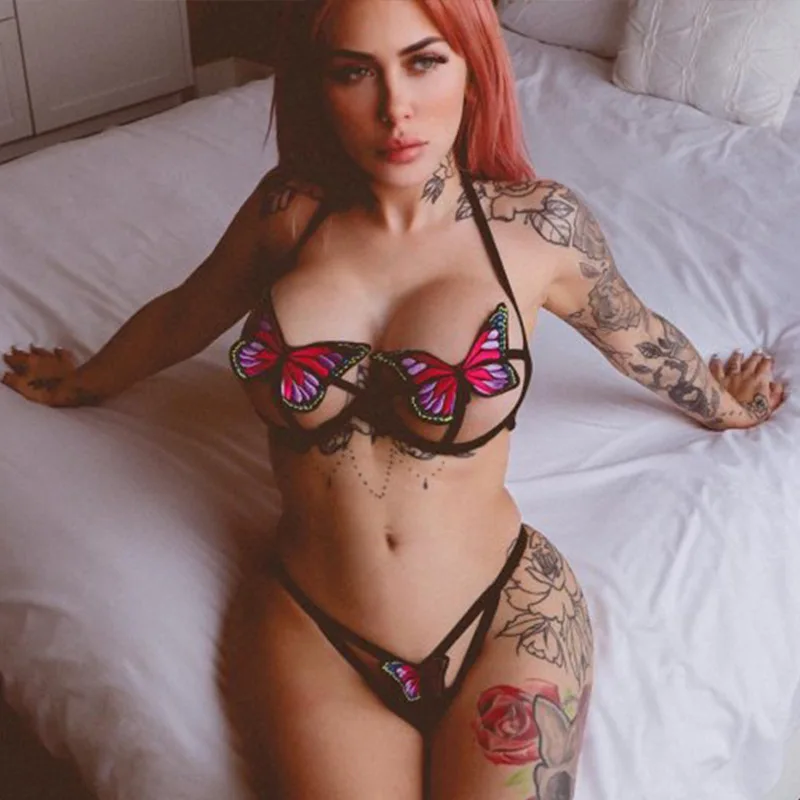 2 шт. Для женщин, комплект нижнего белья, сексуальное бельё с бабочками Babydoll Прозрачное нижнее белье бюстгальтер, набор, высокая талия, стринги нижнее белье, одежда для сна, комплект с бюстгальтером