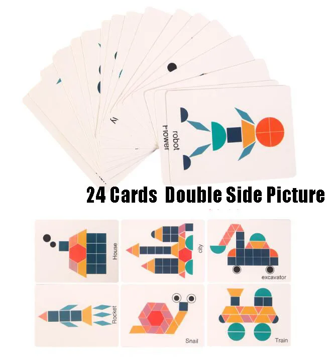 180 шт. Деревянные 3D головоломки Tangram Монтессори Обучающие игру...