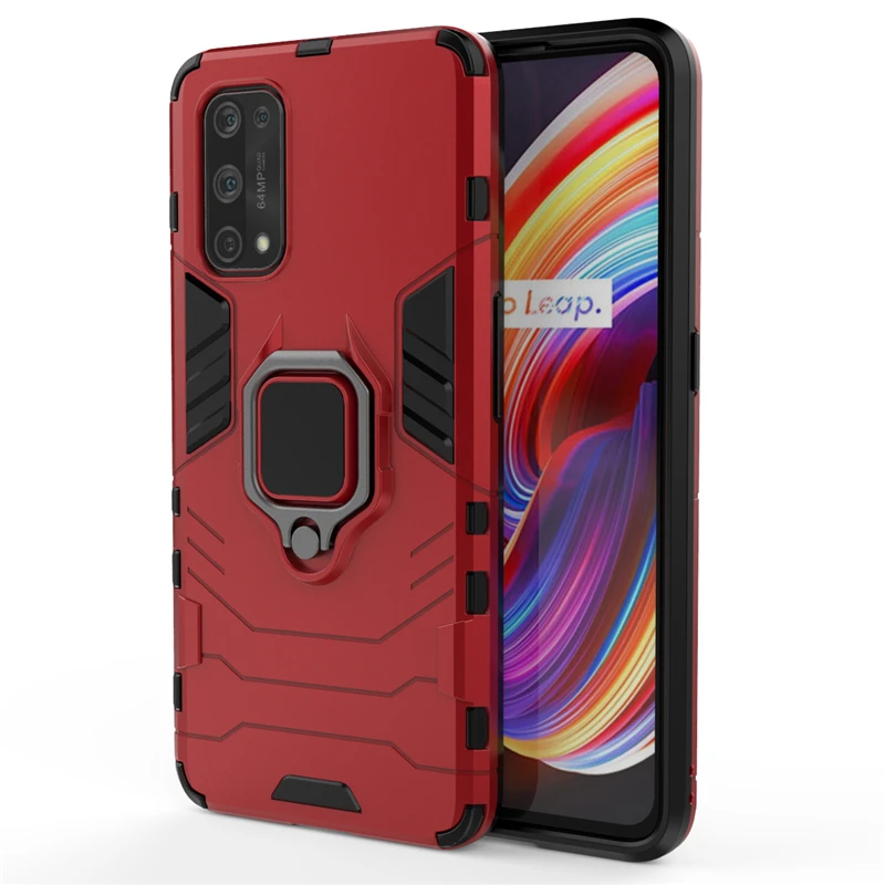 Бронированный противоударный чехол с кольцом-держателем для Realme 7 X7 X50 Pro, Жесткий Мягкий ТПУ Прочный Магнитный чехол-накладка для Realme C15 C12 C11