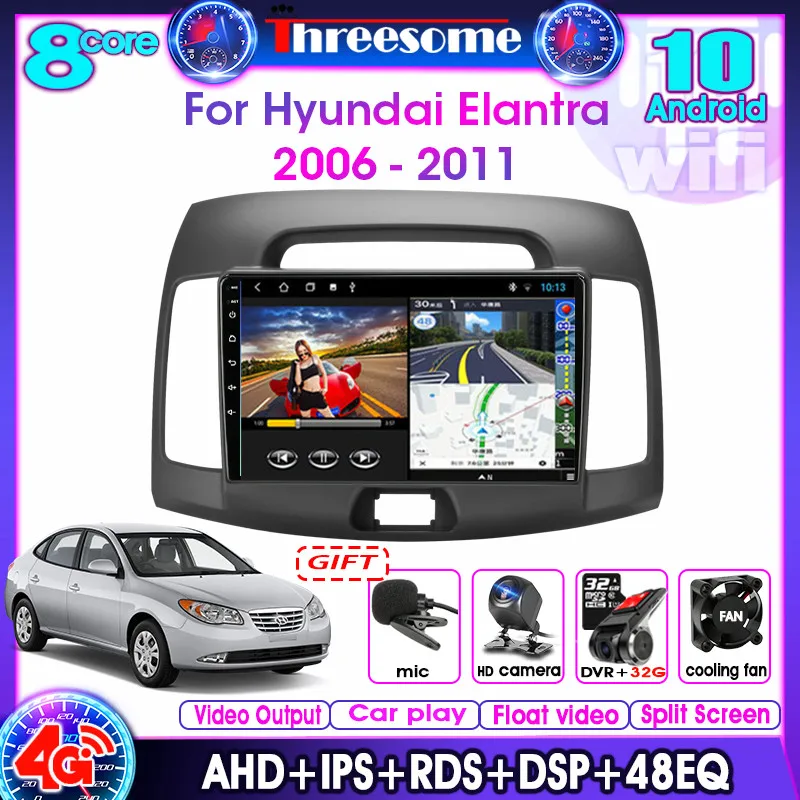 Android 2006, 4G, Wi-Fi, 48EQ, для Hyundai Elantra 4 2011-, фото 2DIN, FM, AM, DSP, RDS, мультимедийный видеоплеер
