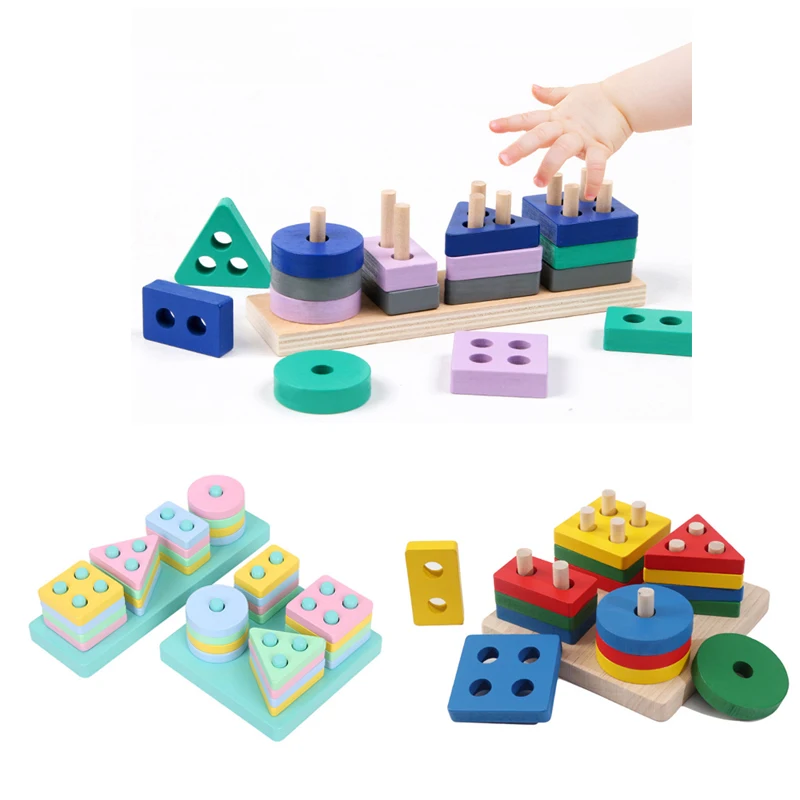 Деревянные игрушки Монтессори строительные блоки Ранние развивающие игрушки цветная форма подходит Детям Мальчикам Девочкам маленький размер цветные геометрические
