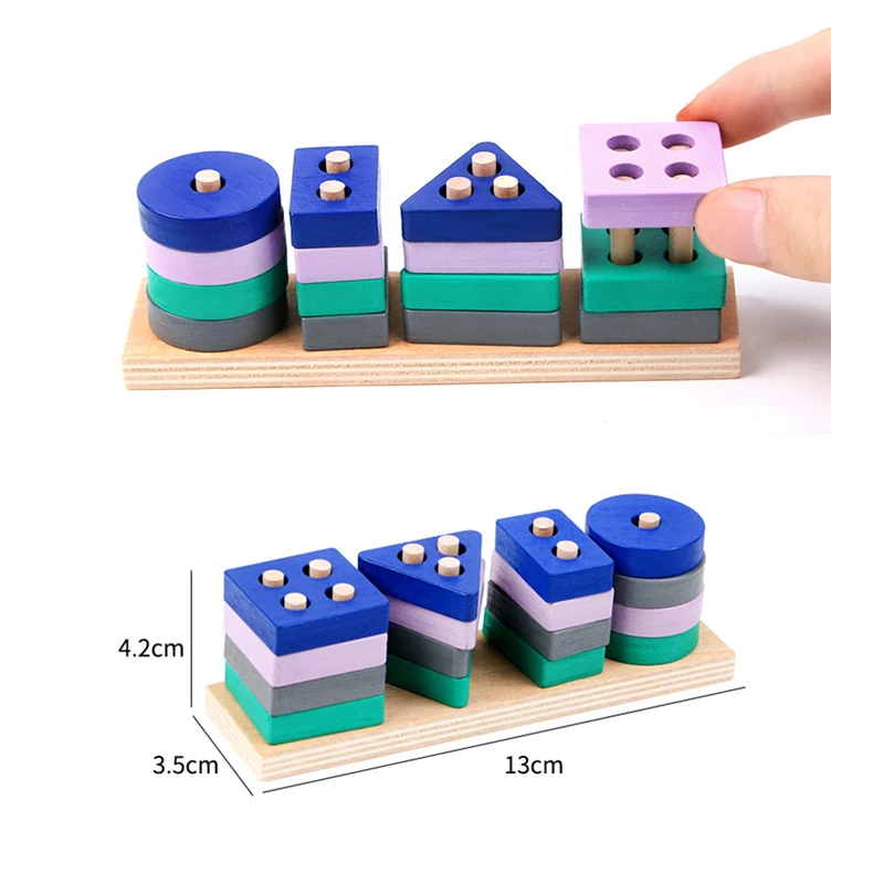 Спецификация:Материал: ДеревянныйРазмер: 4,2*3,5*13 смКостюм для возраста: старше 2 летПредупреждение: в сопровождении родителей в возрасте до 2 летХарактеристика:1. Мягкий цвет не наносит вреда глазам и способствует восприятию эстетики, в то время как распознавание цвета ребенка является просветленным2. Картина безопасна, не раздражает, не выцветает, не BPA3. 360 ° гладкая полировка, отсутствие заусенцев и углов4. Резиновая древесина, равномерная и тонкая текстура5. Строительные блоки, тренировка захвата, развитие тонких движений6. Поместите форму на соответствующий набор колонн, чтобы улучшить способность ребенка распознавать форму, концентрацию упражнений и терпение, вдохновить логическое мышление и помочь развитию мозга