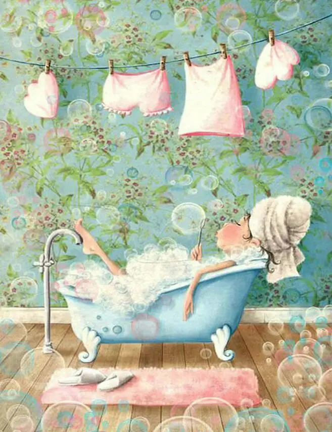 2020 Пазлы для творчества, алмазная вышивка, мультяшная девушка, купание, полная квадратная, Круглая Мозаика, 3d Алмазная картина сделай сам, наклейка для ванной комнаты
