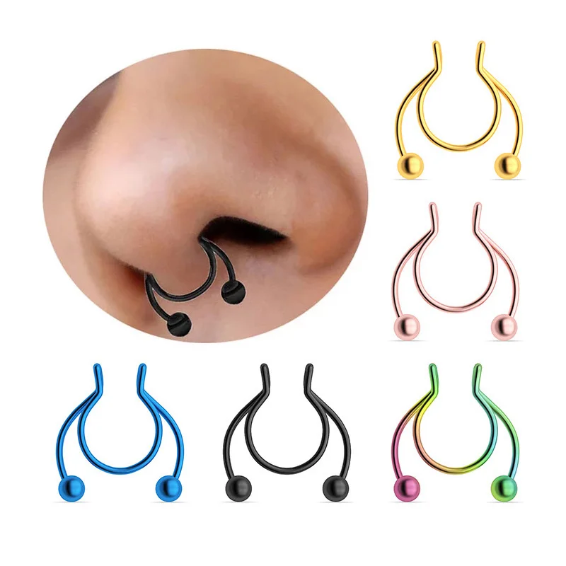 Кольцо-кольцо для имитации пирсинга носа из нержавеющей стали, 1 шт., для губ, ушей, носа, без прокола, клипса для пирсинга носа