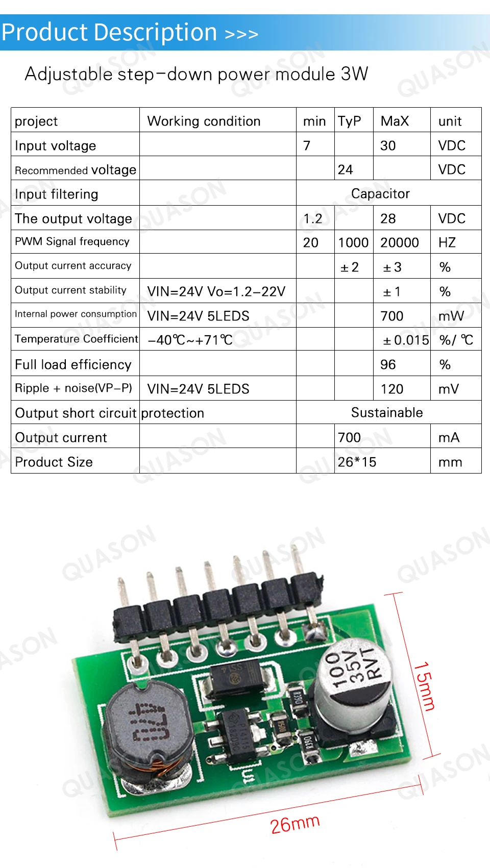 3 Вт DC IN 7-30V OUT 700mA светодиодный драйвер лампы Поддержка PMW DimmerDC-DC 7,0-30V до 1,2-28V понижающий модуль преобразователя