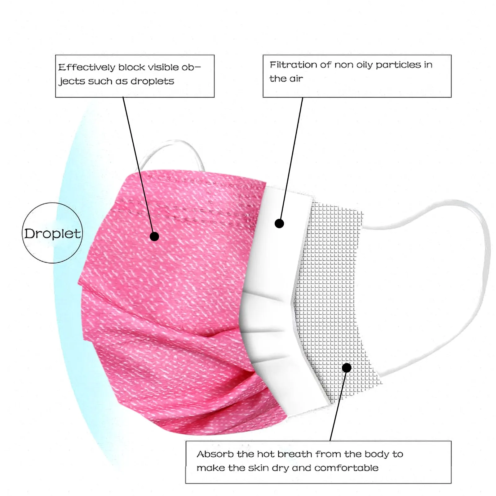 50 шт. розовый синий кремового, одноразовые защитные маски нетканый...