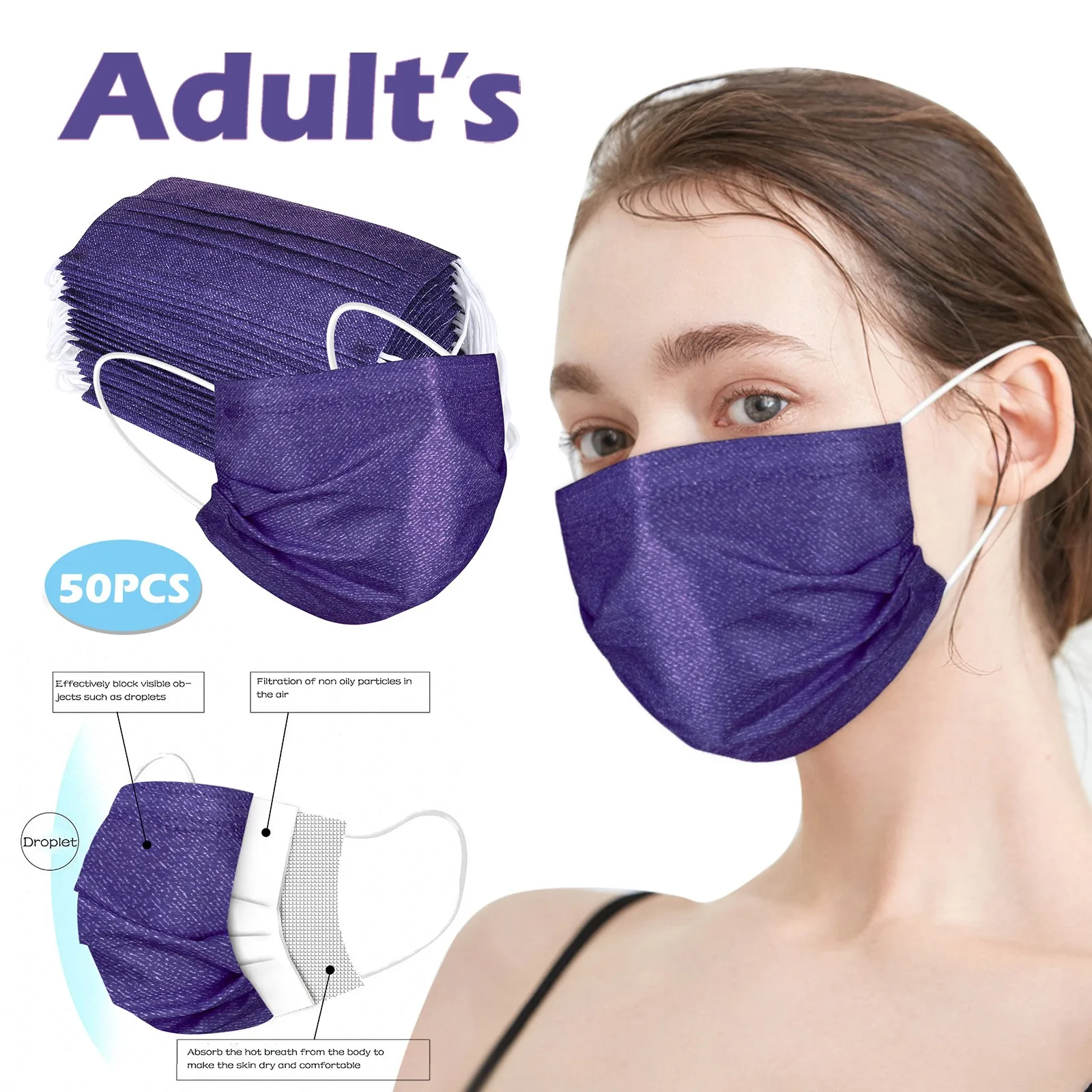 Одноразовая маска для лица, 3-слойная Нетканая защитная маска, 50 шт.