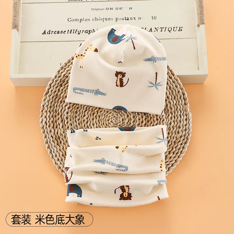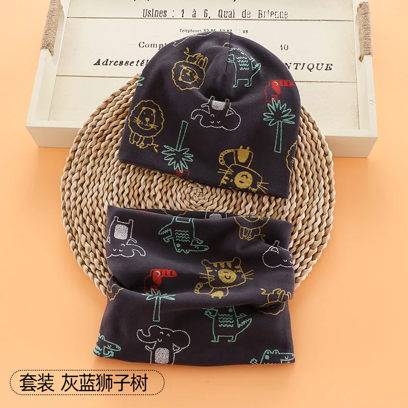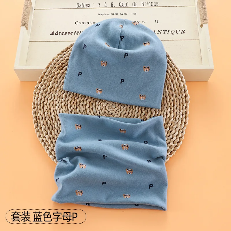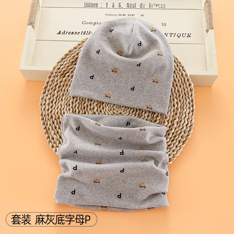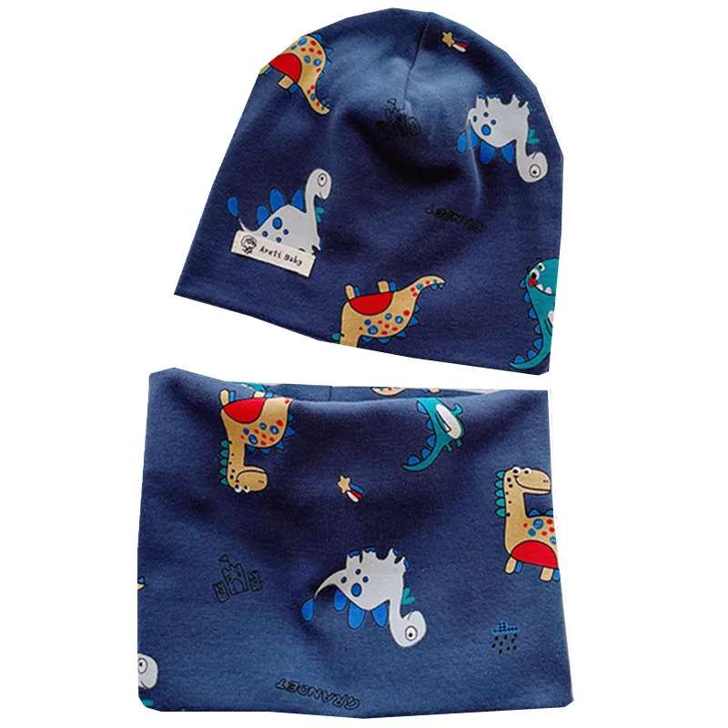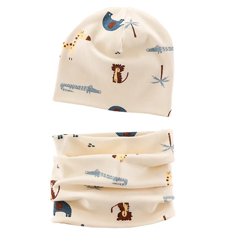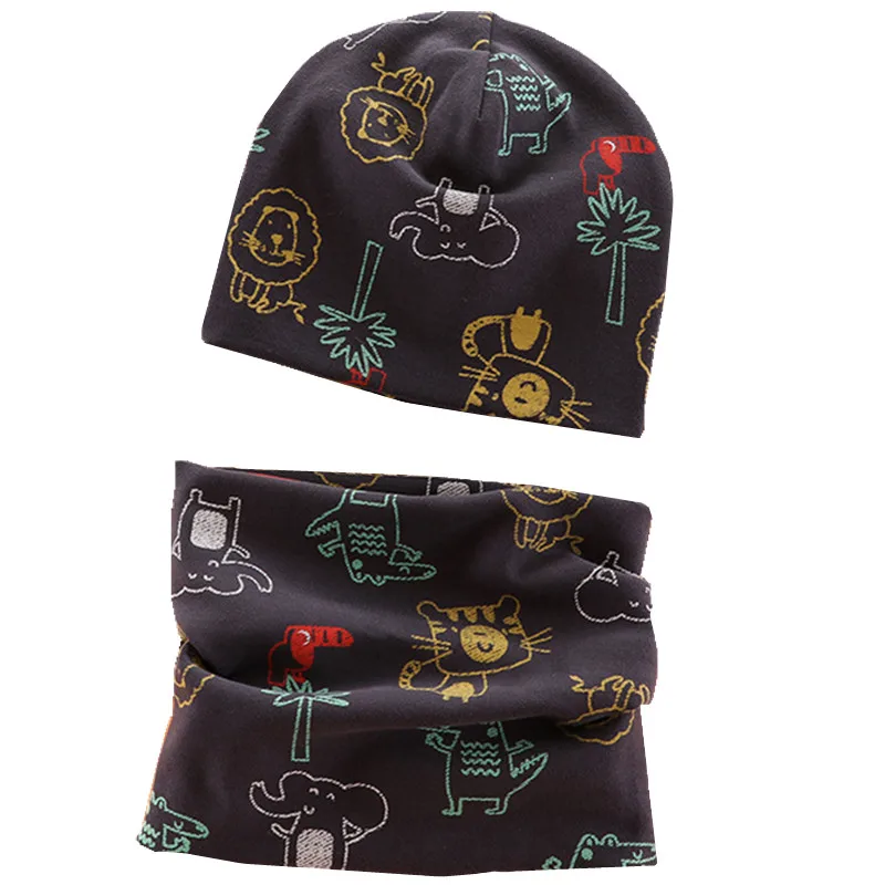 Шапка-бини с мультяшным рисунком для мальчиков и девочек, теплый хлопковый головной убор и шарф
