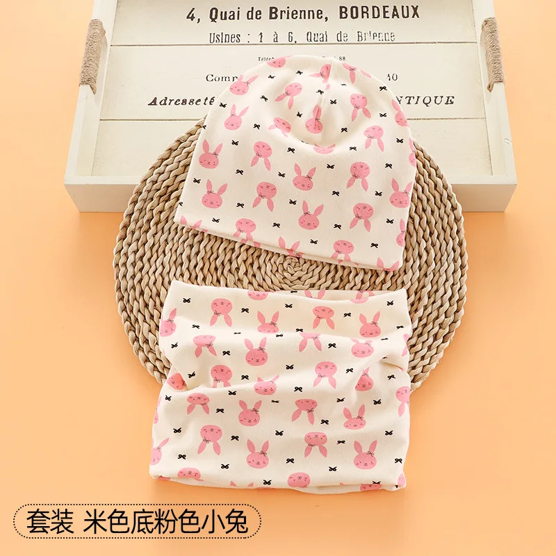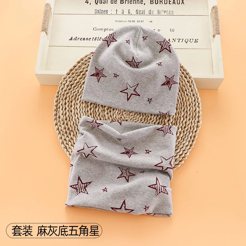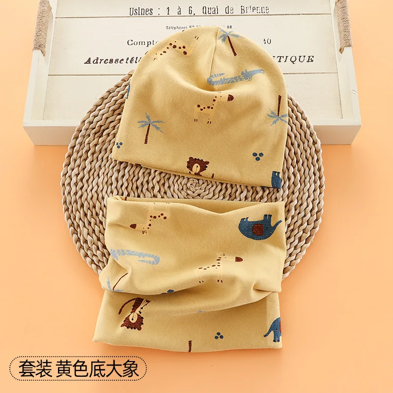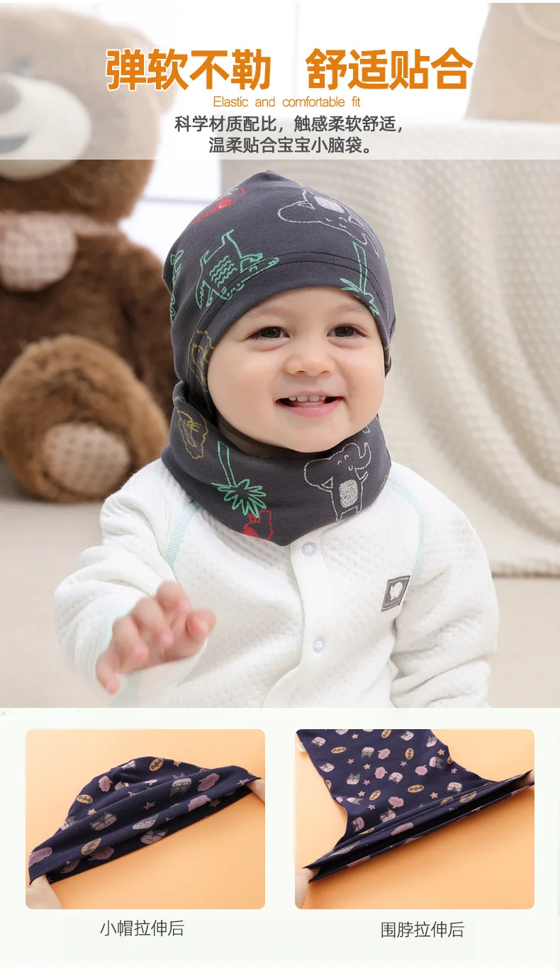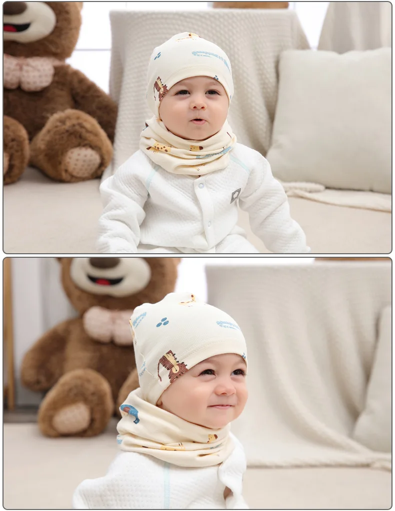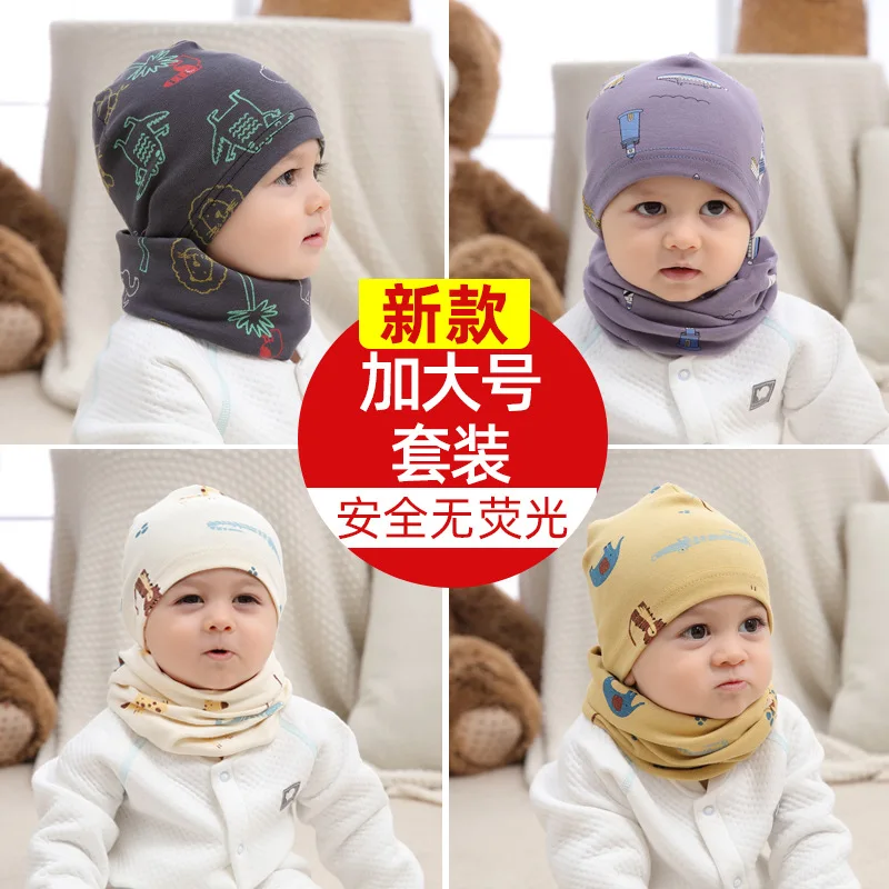 Шапка-бини с мультяшным рисунком для мальчиков и девочек, теплый хлопковый головной убор и шарф