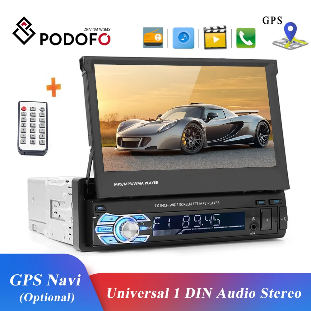 Автомобильный мультимедийный видеоплеер Podofo MP5, 7-дюймовый сенсорный экран, USB, SD, AUX, FM-радио, универсальный разъем 1 DIN, аудио, стерео, зеркальная связь