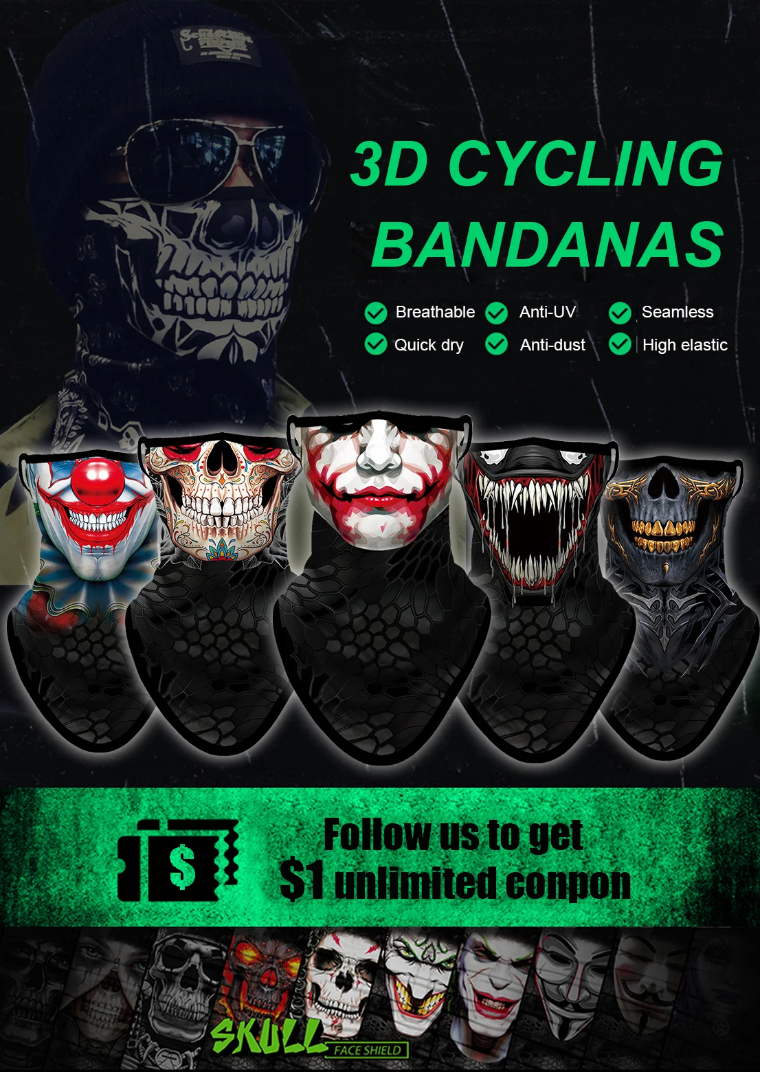 Треугольная бандана 3D, шарф с огурцами для лица, маска-Ушная петля, вендетта с черепом, Шейная гетра, защитная Мужская лыжная искусственная маска-повязка