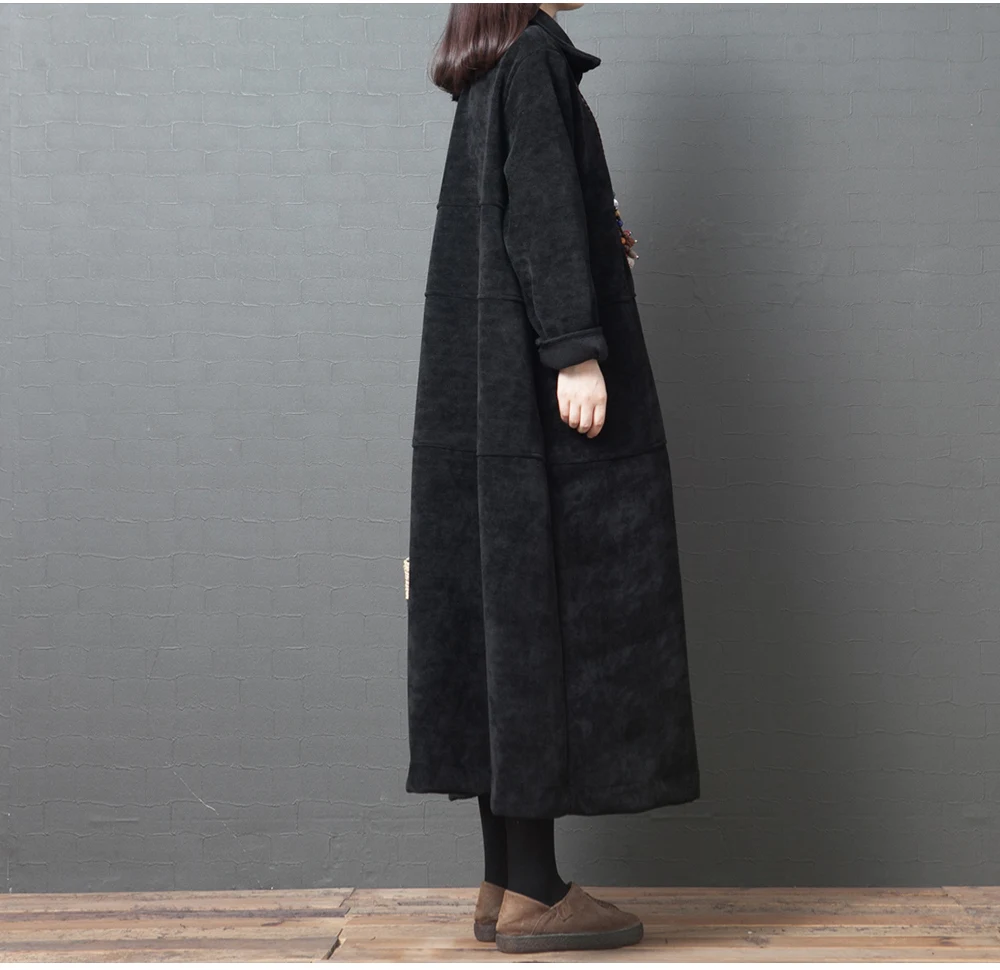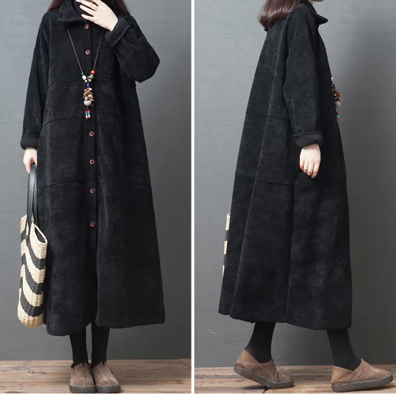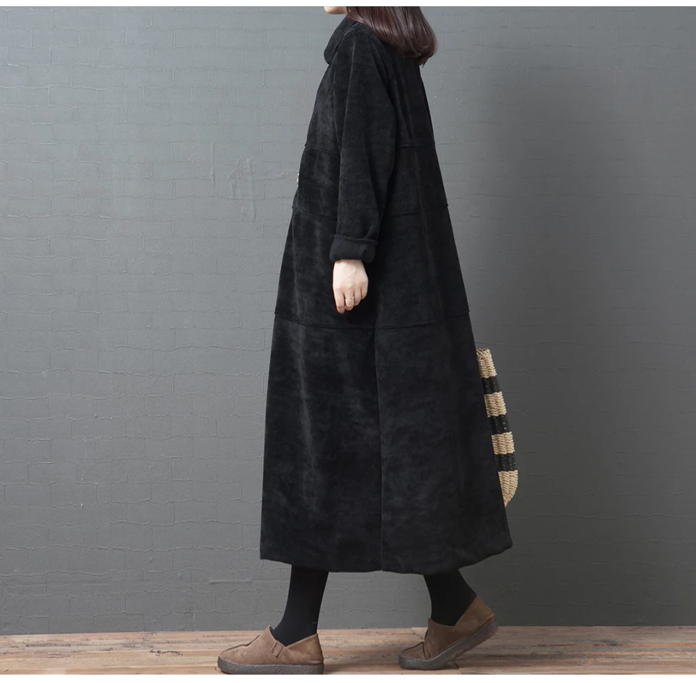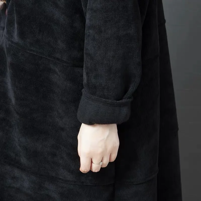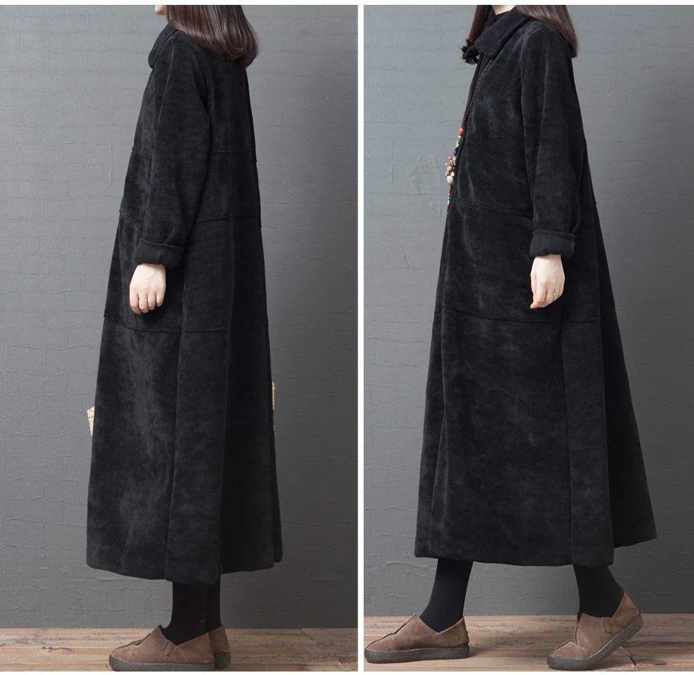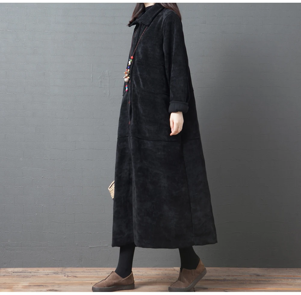 Женское длинное платье из хлопка DIMANAF, винтажное свободное Повседневное платье-оверсайз с карманами, однотонный кардиган для осени и зимы