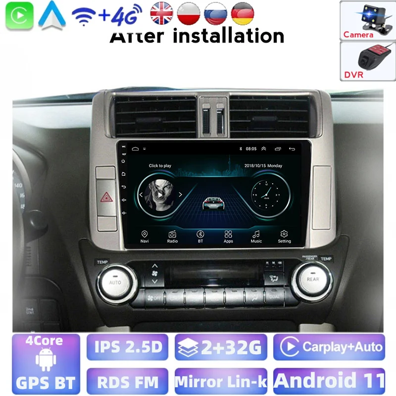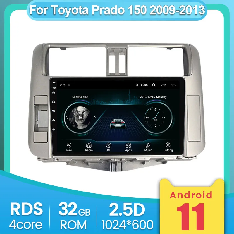 Автомагнитола 1024*600P, Android 9,0, 2 + 32 ГБ, GPS, для Toyota Land Cruiser Prado150 2009-2013, мультимедиа, поддержка нескольких языков