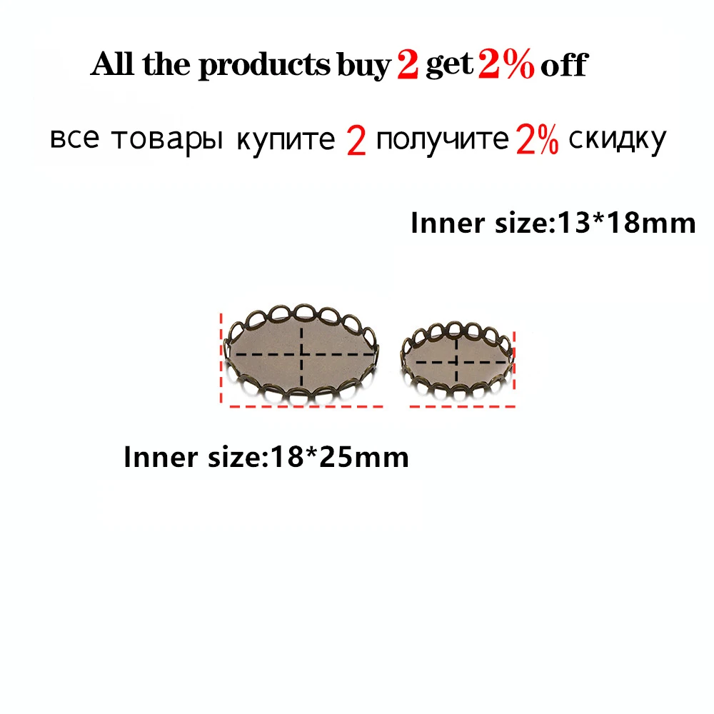 20 шт.лот 13x18 18x25 мм овальный кабошон основа установка пустая брошь лоток двойная кружевная основа для DIY ювелирных изделий принадлежности аксессуары