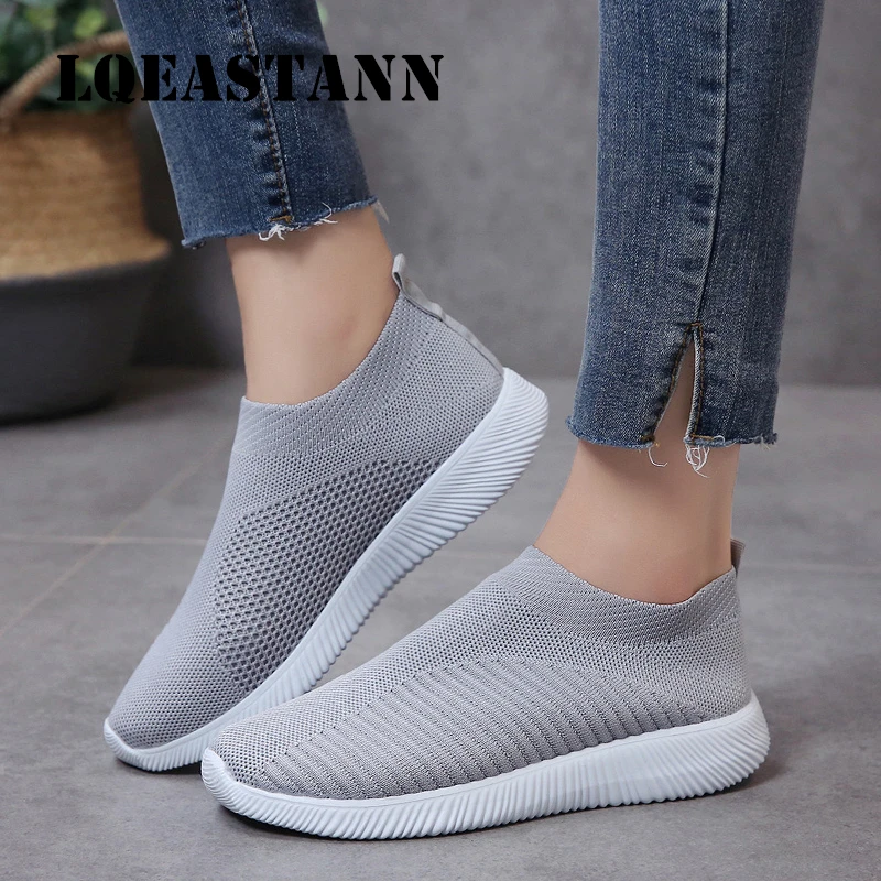 Кроссовки LQEASTANN мужские сетчатые, повседневные сникерсы, вязаные носки, мягкая подошва, плоская подошва, весна-лето