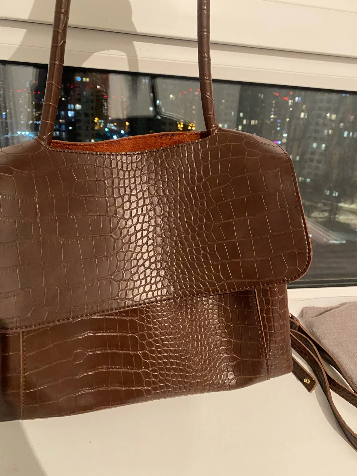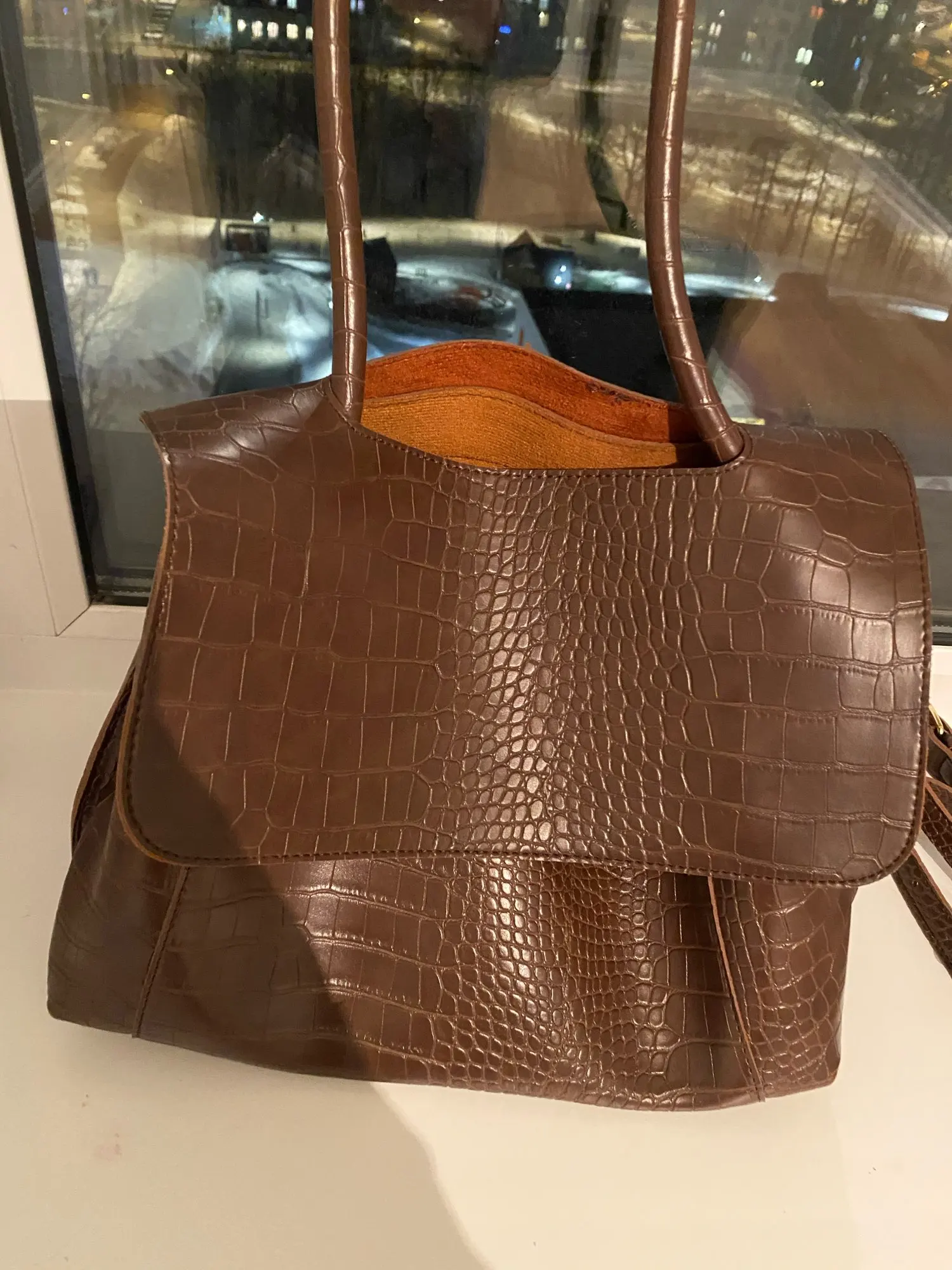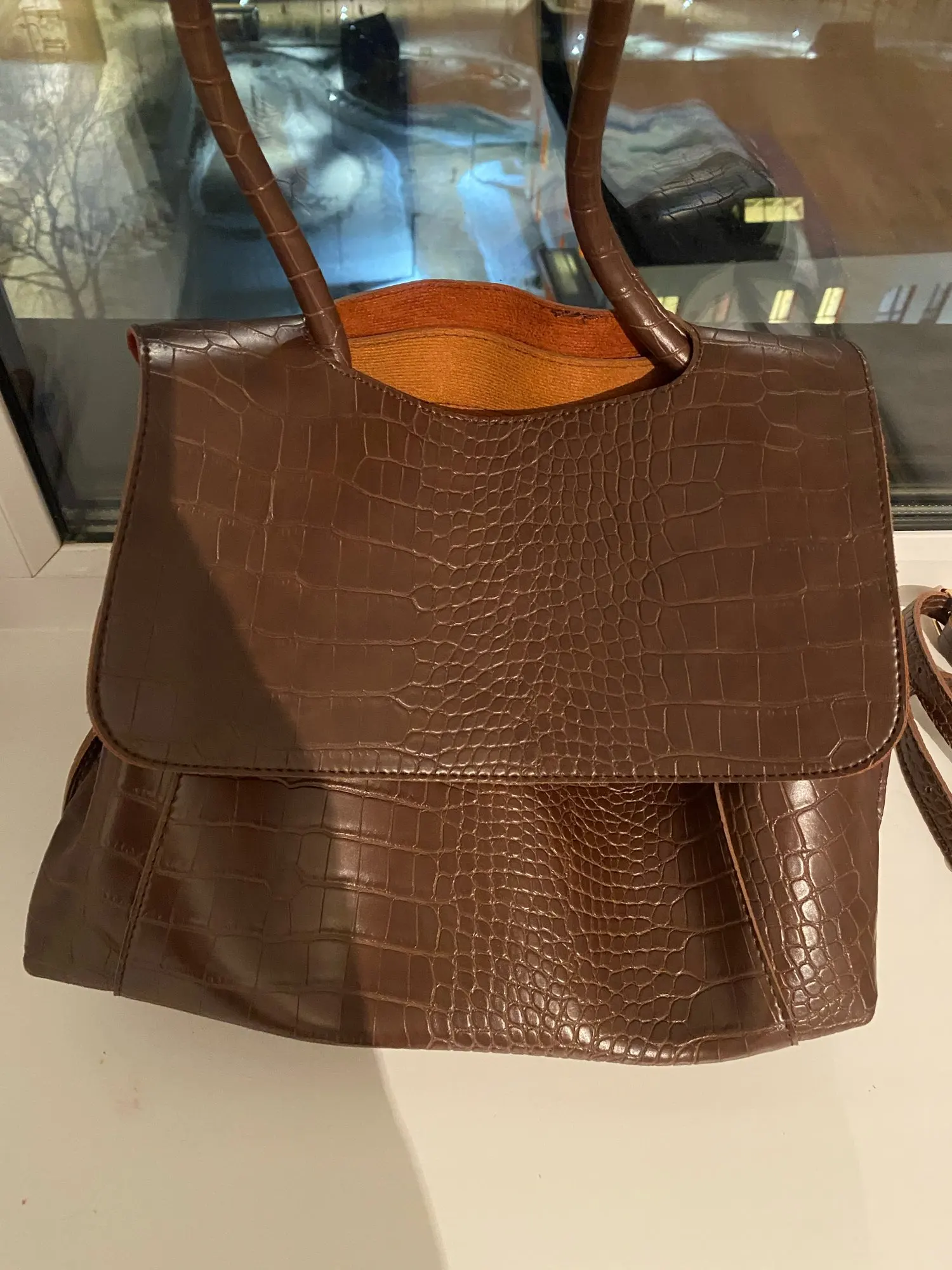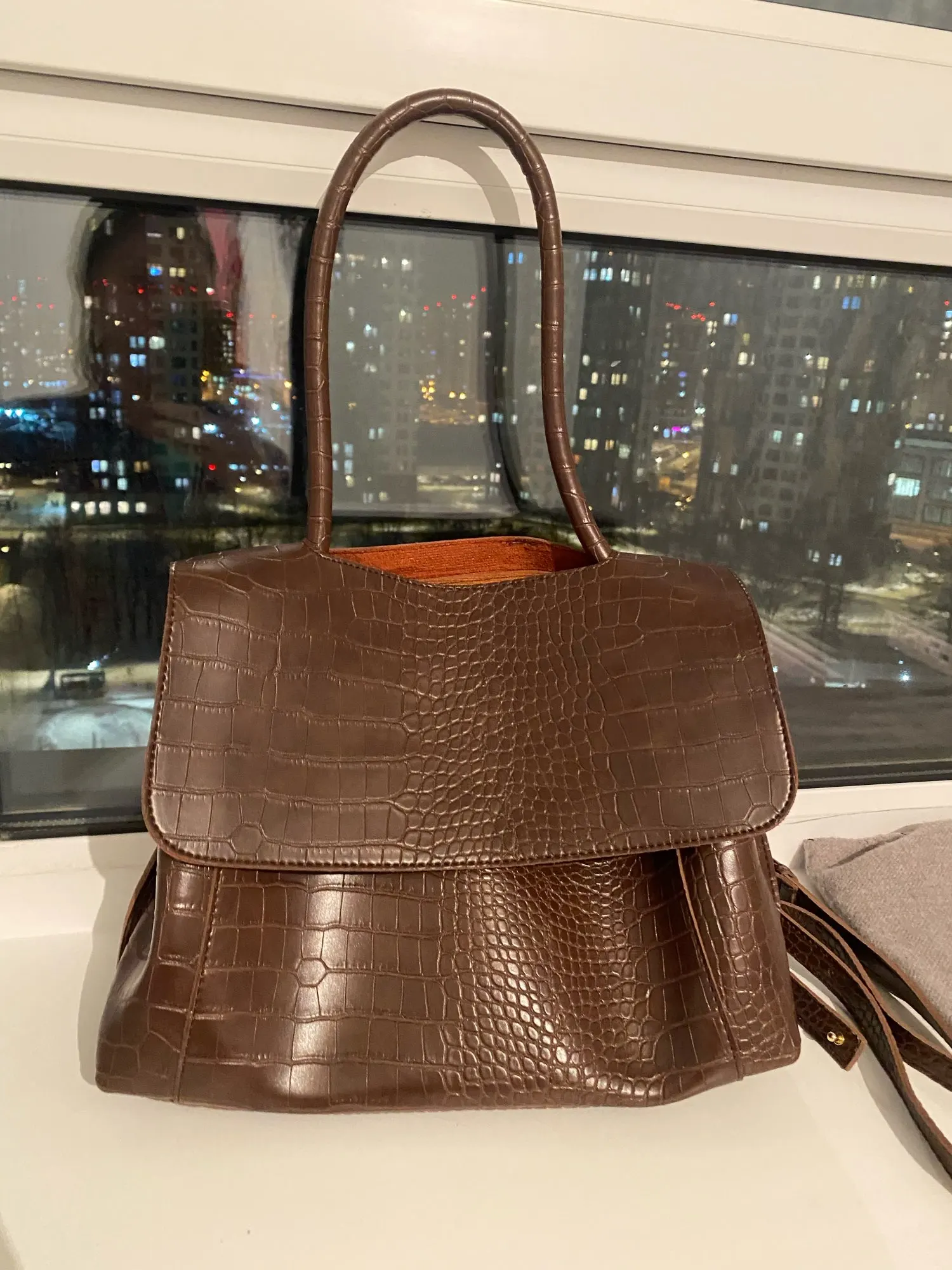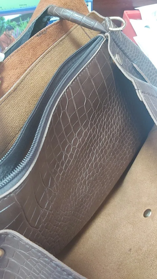 Очень хорошая сумка. Внешне похожа на кожаную. Немного дешевит подклад, выглядывает ткань. Но так, все хорошо. Дизайн очень модный, удобная. Внутри отсек в середине с молнией
