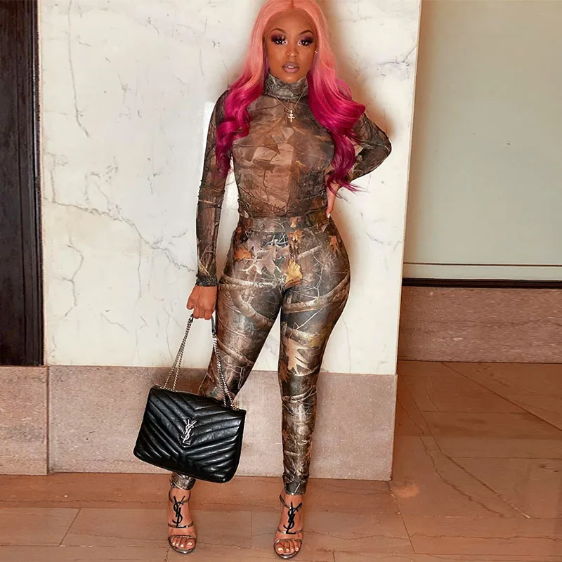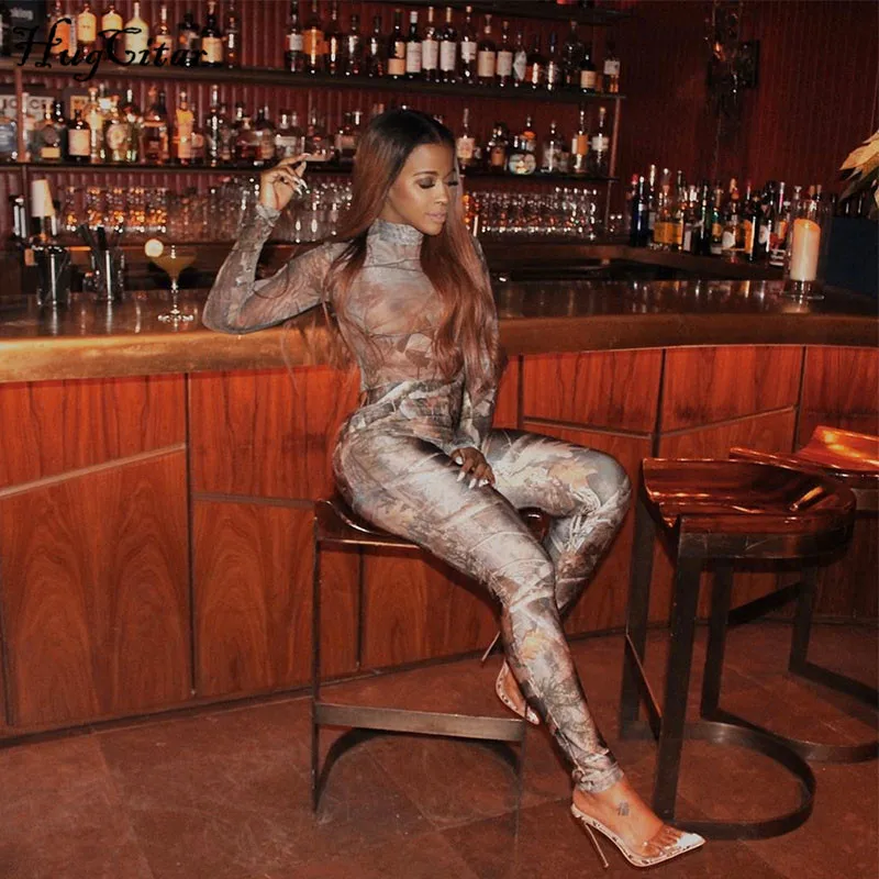 Женский спортивный костюм Hugcitar, боди с длинным рукавом и винтажным принтом, леггинсы, Осень-зима 2020, Y2K