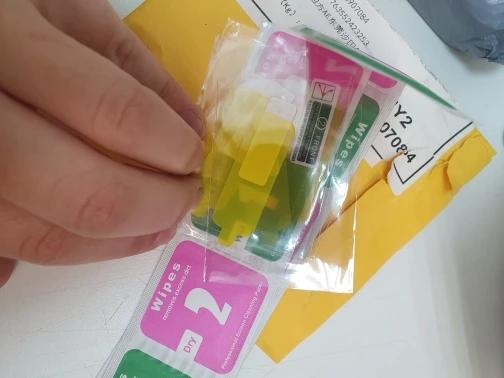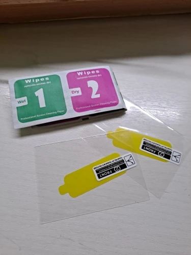 Нормальная защитная плёнка для экрана Samsung Galaxy Fit2. Ничего сверхъестественного. Заказывал ещё в марте, сначала крайней датой доставки было 20-е апреля, но потом она сменилась на 20-е мая, что немного напрягло, но, впрочем, это не критично. 05.05.21 посылка уже лежала в почтовом ящике. Внутри конверта пять плёнок и десять салфеток (пять влажных и пять сухих) для чистки. Первую плёнку запорол, ибо не знал, как её клеить. Сначала подумал, что жёлтый пластик и является защитой. Приклеил, отклеил, но магии не произошло. Потом полез посмотреть объяснение в Ютубе и вторую приклеил нормально (относительно). Надеюсь, надолго хватит :)