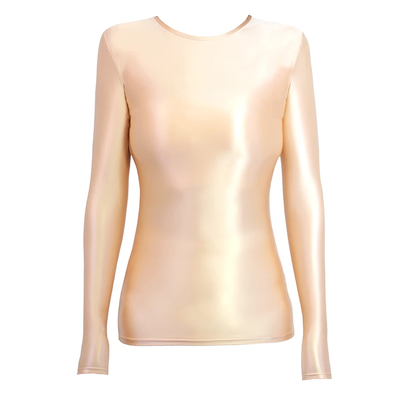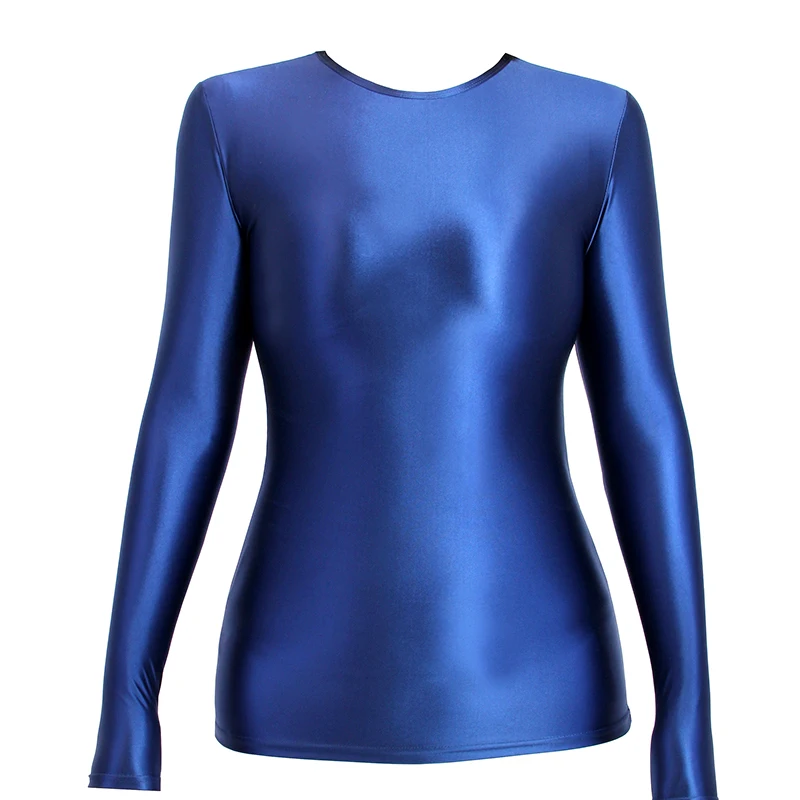 Женская футболка DROZENO, сексуальные блестящие трико, блестящая повседневная футболка, однотонная нижняя рубашка