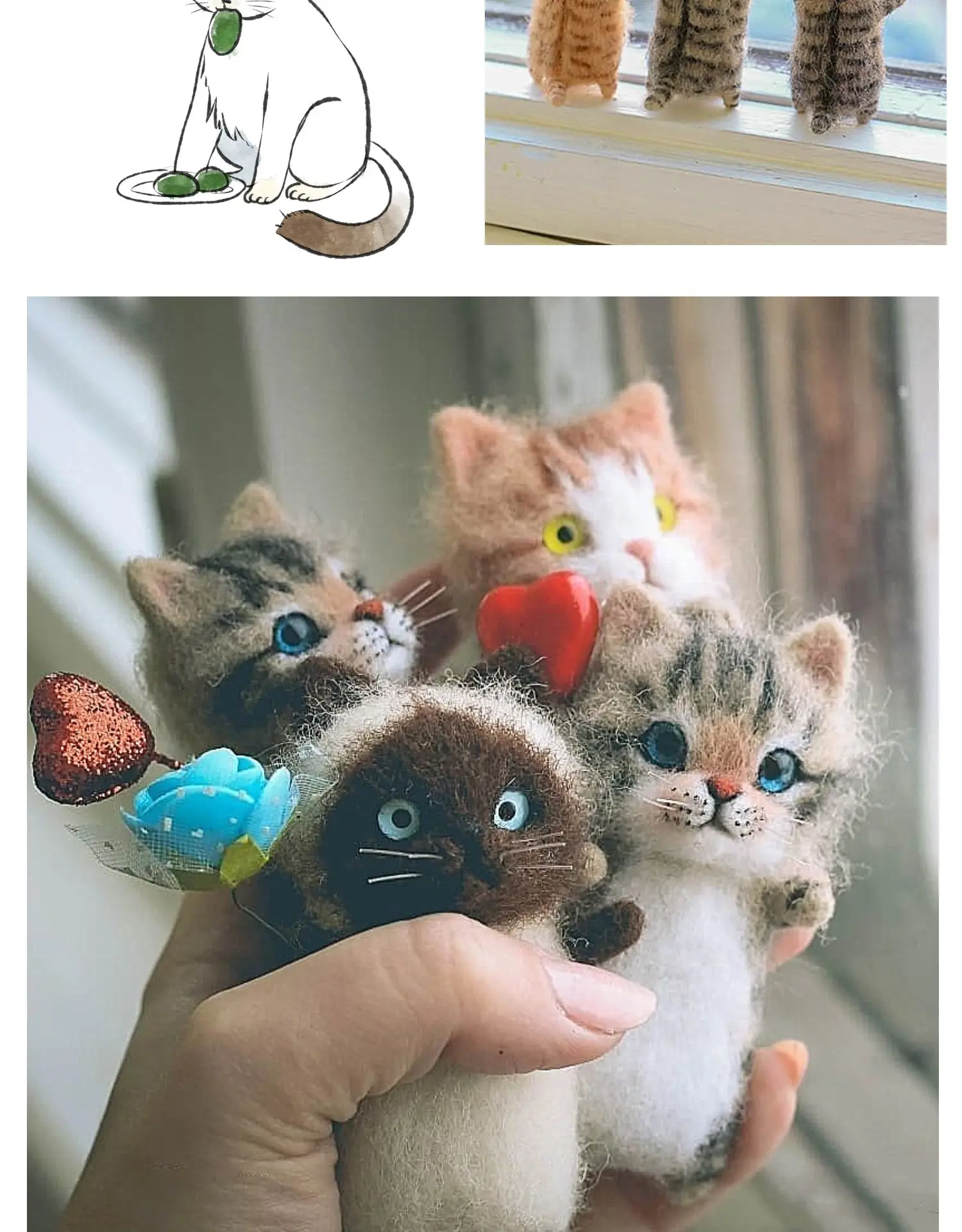 Наименование: войлочный комплект для кошек Сложность:♥♥ Материал: Высококачественная шерстяная мягкая шерсть, деликатная и мягкая на ощупь, Натуральный краситель, яркий цвет, не выцветает, безопасный и Безвкусный. Размер готового продукта около 7 см Пожалуйста, обратите внимание на пропорции при изготовлении Примечание 1) из-за различных методов производства, Размер будет отличаться, это нормально. 2) в комплект не входят реквизиты для фотосъемки. Чтобы избежать окрашивания вашей работы, протрите ее перед использованием. Не готовый продукт, вы должны сделать его самостоятельно. Посылка из этого материала не содержит бумажного руководства Нужна Инструкция по ссылке ниже