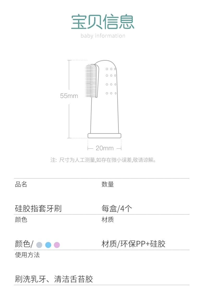 Детская зубная щетка на палец с коробкой, мягкая силиконовая резино...