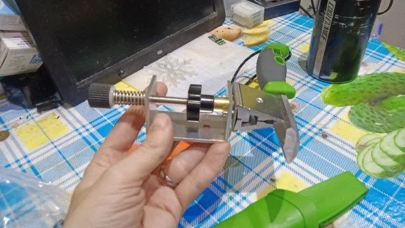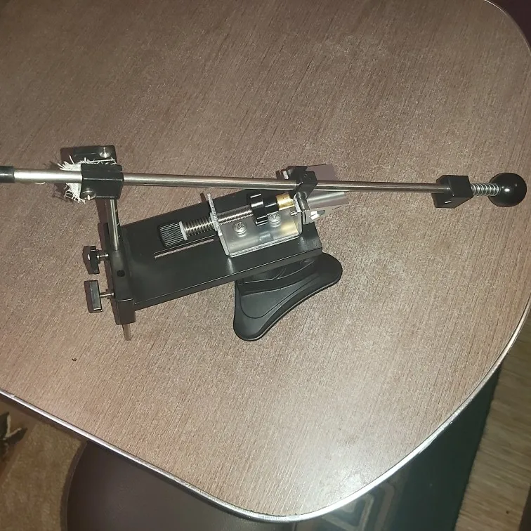 нормальный поворотный зажим. единственное что пришлось чуть поджать тисками одну сторону опорной пластины губок, чтобы при повороте углы были одинаковыми. скопирайтили это со штатовский точилки, имею такую...она кстати тоже нуждалась в центровке, так что норм. кстати сканди типо Моры на ней почти не реально точить, зажимать приходится за самый торец обуха ибо углов не хватает....но собственно сканди в точилках и не нуждается и легко точится просто руками на камнях. в общем рекомендую! нормальная штука под доводку до ума.