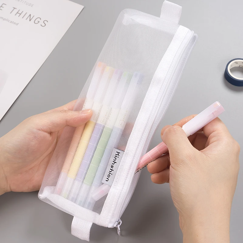 Простой Прозрачный сетчатый чехол для карандашей, офисный чехол для...