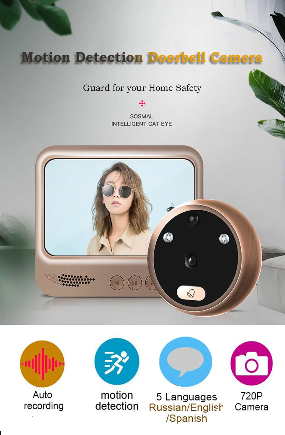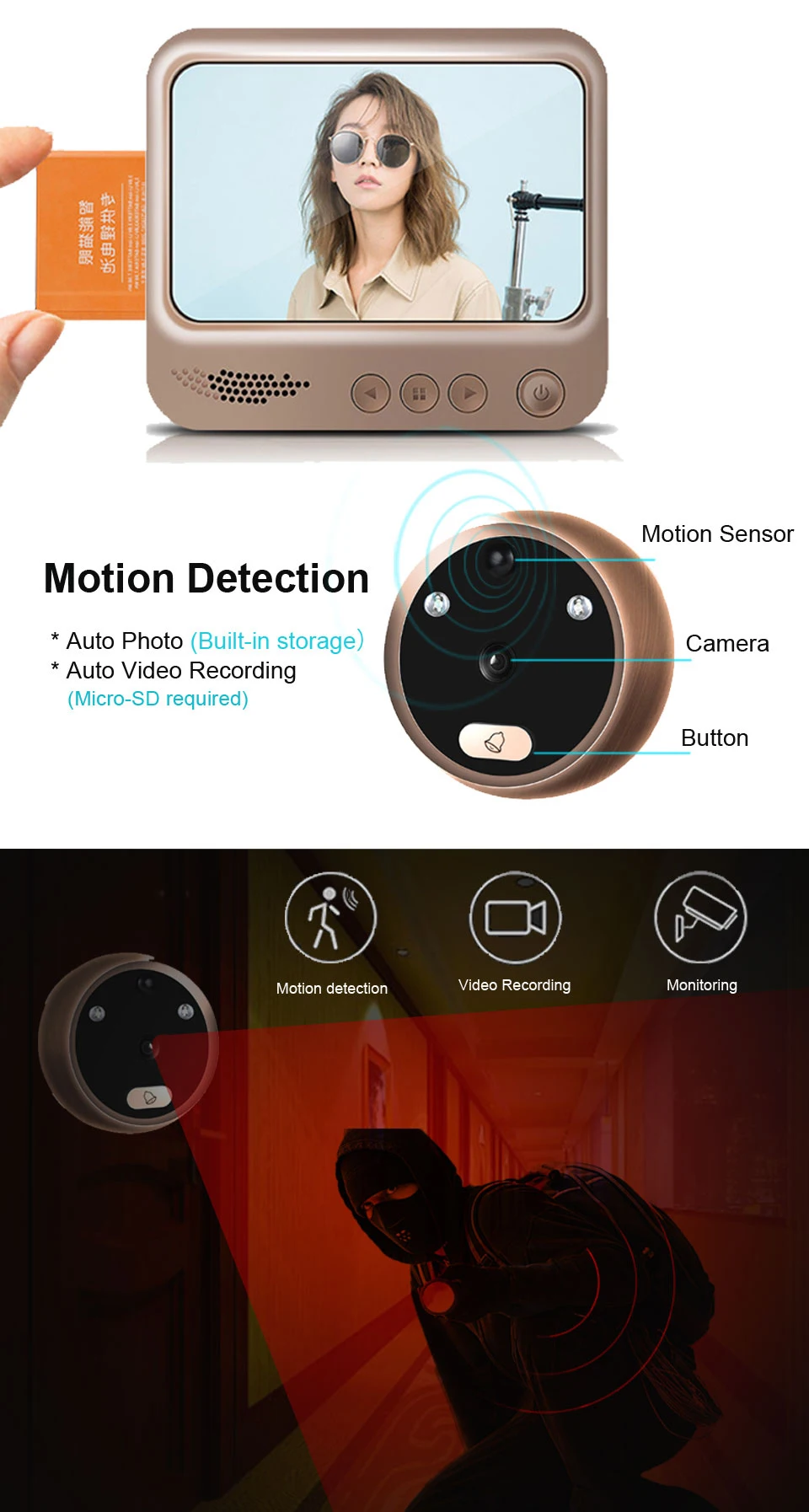 Видеоглазок Topvico, дверной глазок с электронным кольцом обнаружения движения, дверной звонок, камера видеонаблюдения, автофото, литиевая батарея