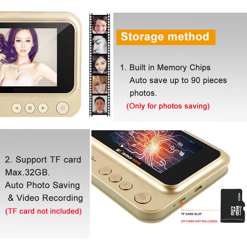 Я купил это устройство, чтобы заменить старого зрителя с открытым отверстием. Установка занимает менее 2 минут. Камера работает хорошо. Хорошее Обнаружение движения.