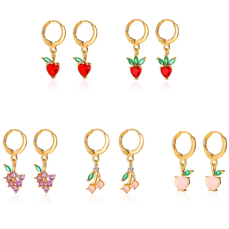 Серьги с фруктами ZYZQ в Корейском стиле женские, маленькие серьги с кубическим цирконием, персиковой клубникой, Студенческая бижутерия 2020