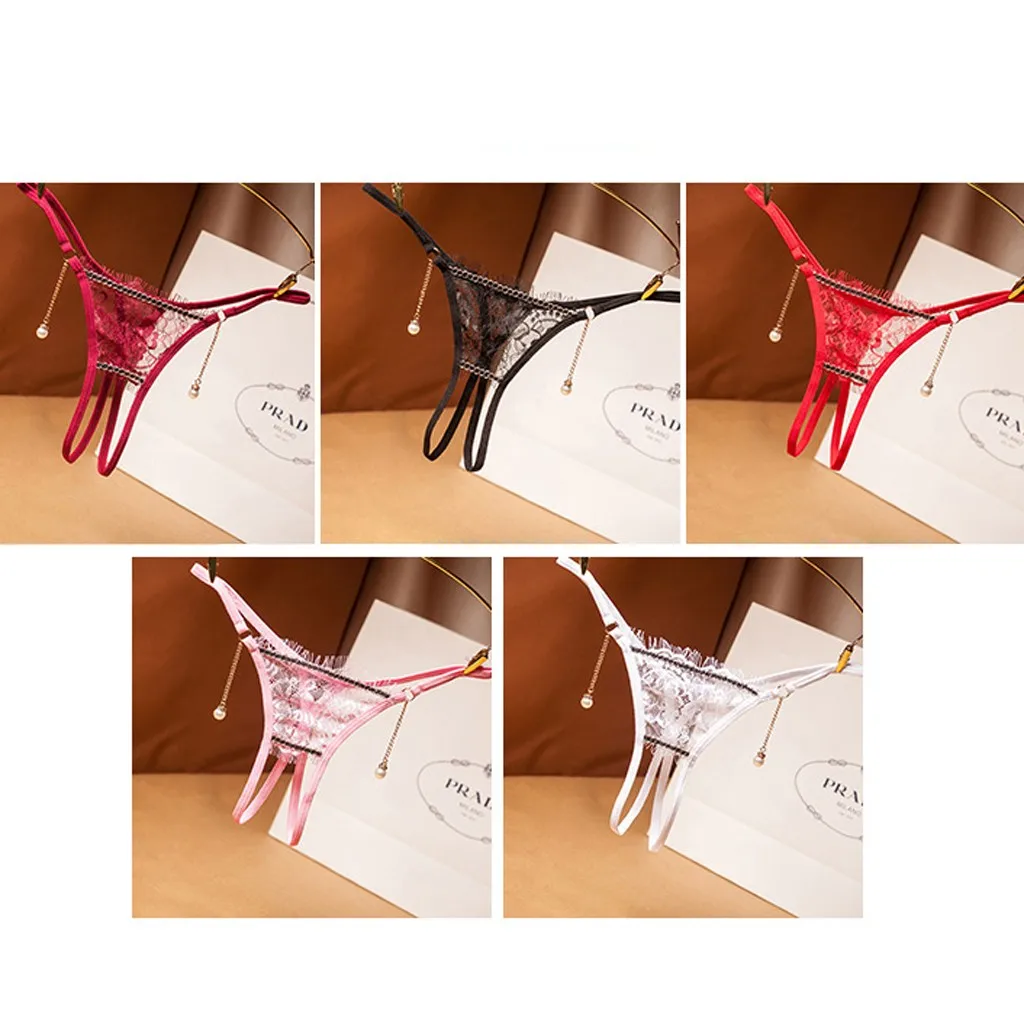 Новые женские кружевные трусики сексуальное женское нижнее белье открытая промежность жемчужный кулон трусики сексуальный бюстгальтер и трусики для женщин плюс размер