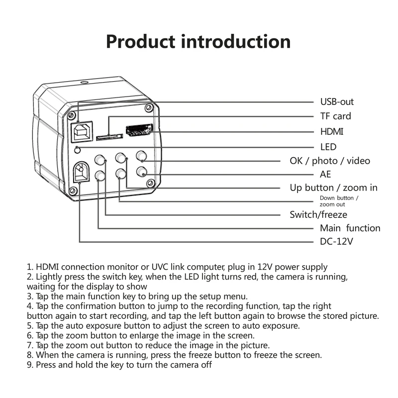 Отмечено!Карта памяти TF предназначена только для выхода HDMI. USB-выход будет храниться в ПК.Эта камера микроскопа представляет собой уменьшающий 0,5x объектив, что расширяет поле обзора камеры. Его можно использовать с C-Mount или CS-Mount камерой в любом пикселе и помещать в бинокулярный или тринокулярный микроскоп для расширения его поля зрения. Может устанавливаться непосредственно в биологическую или стереокамеру.