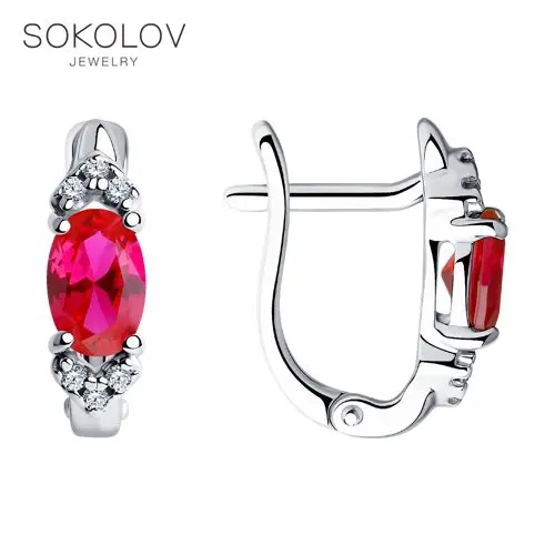 Серьги SOKOLOV из серебра с корундами рубиновыми (синт.) и фианитами, Серебро, 925, Женские, Серьги 2022 тренд
