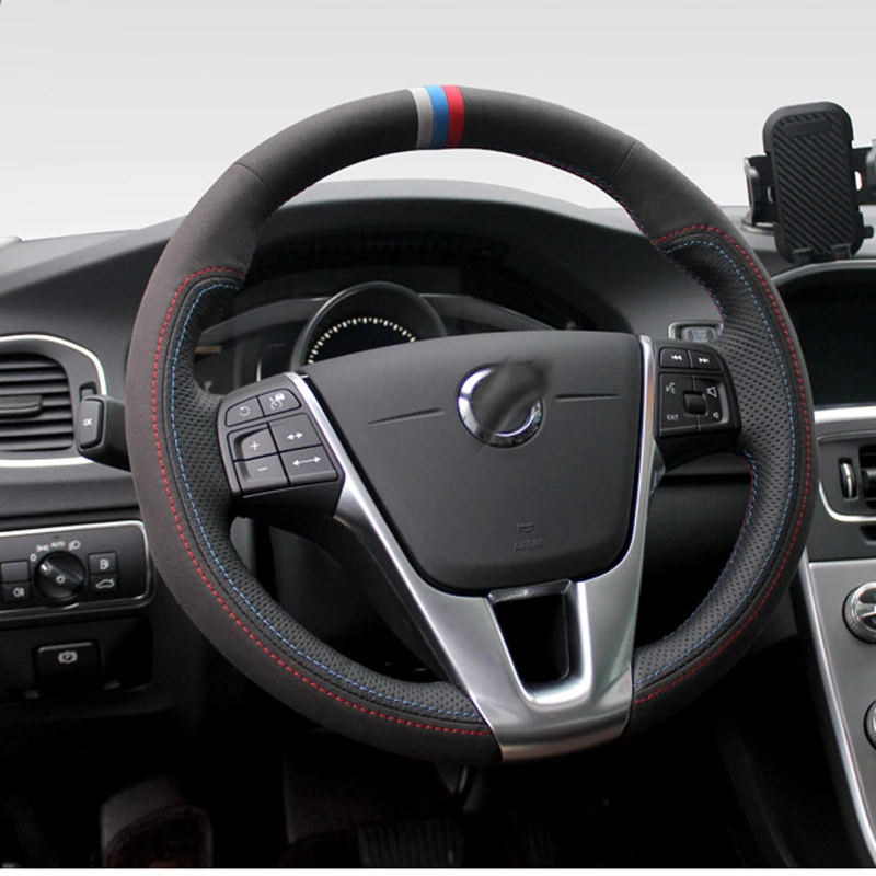 Чехол на руль для Volvo S60, S60L, XC60, многоцветный, замшевый, кожаный