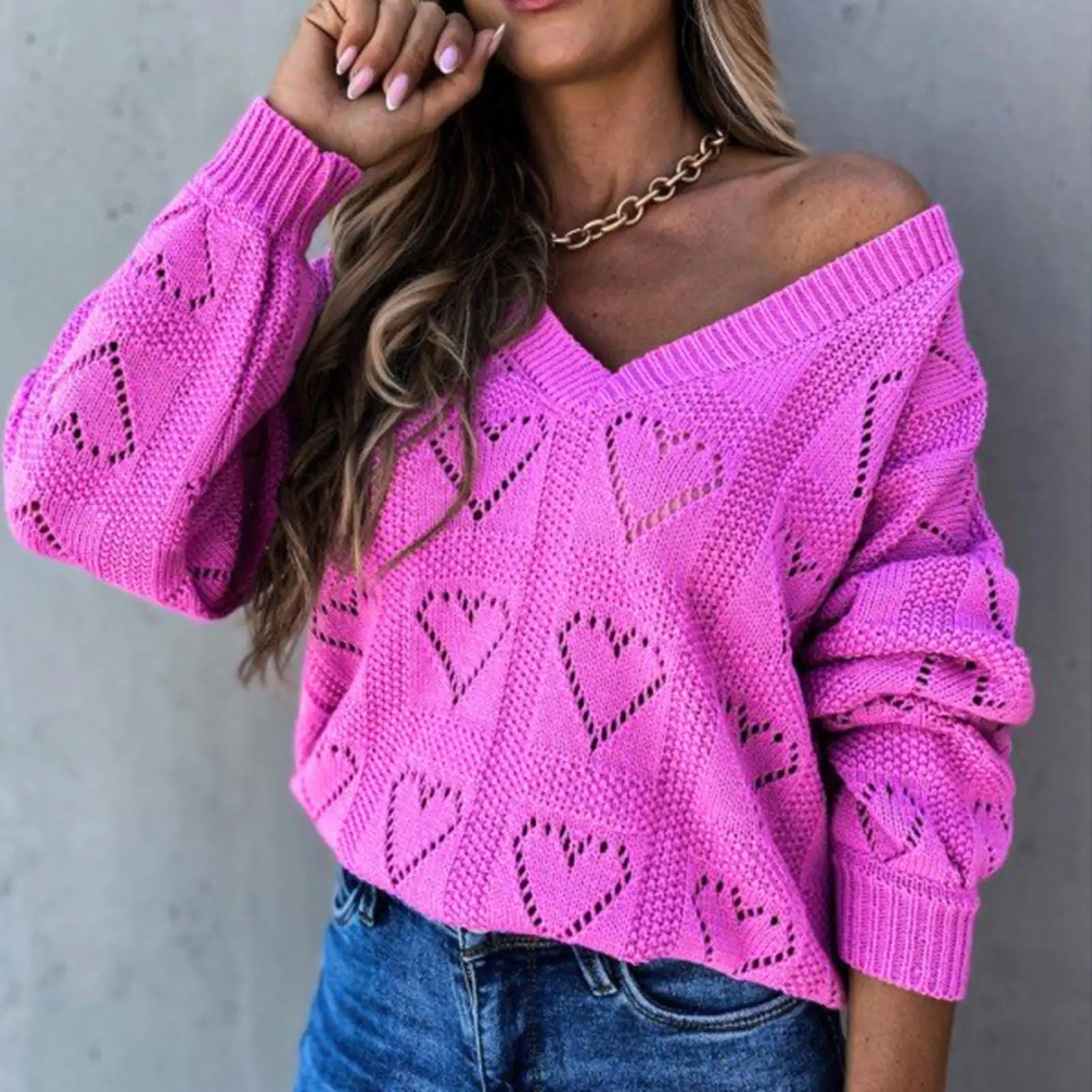 Autumn Winter Sweaters Hollow Out DesignSolid Color Casual Loose Knitted Top