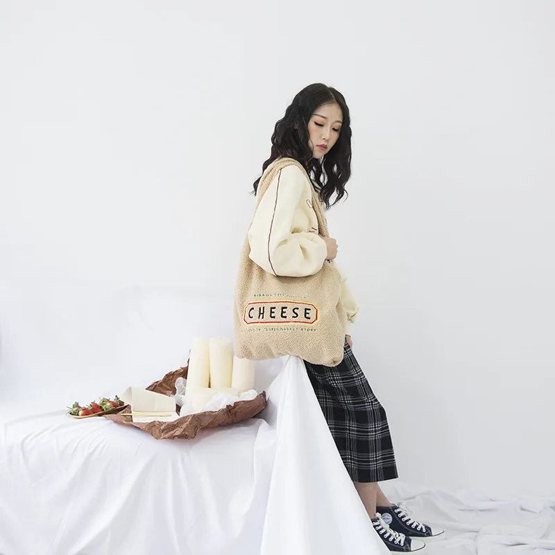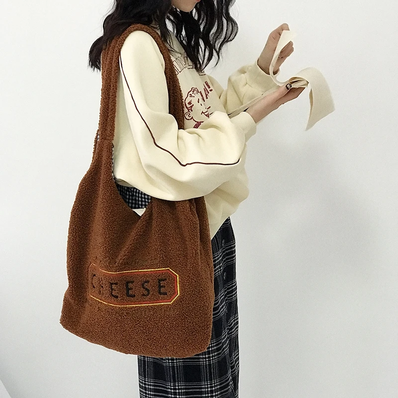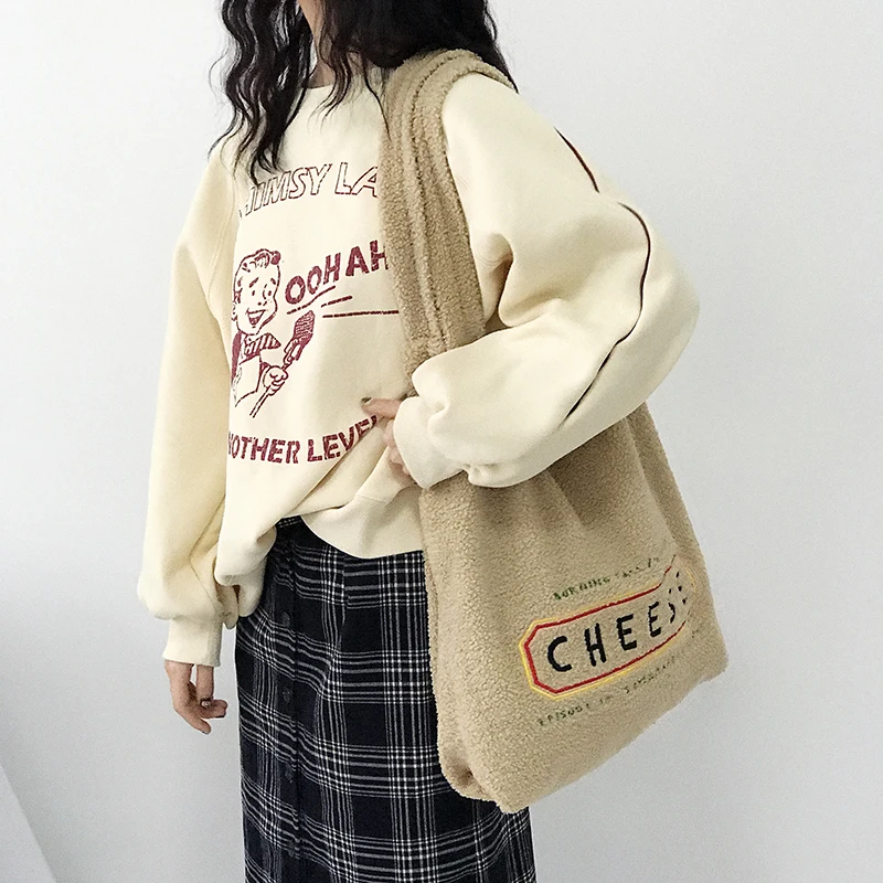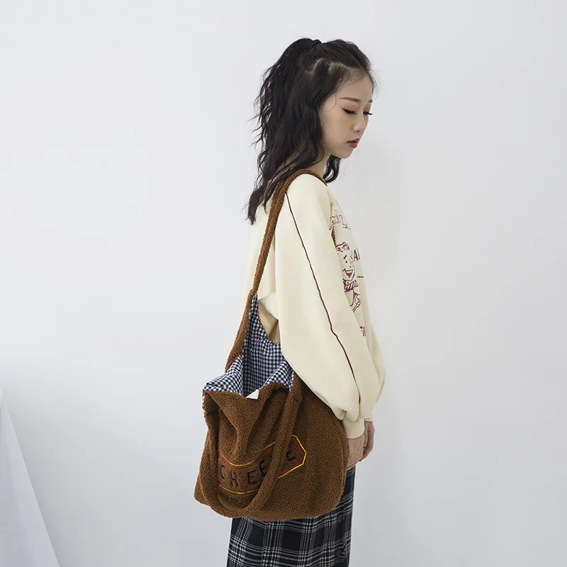 Сумка-тоут женская из ткани с вышивкой под ягненка