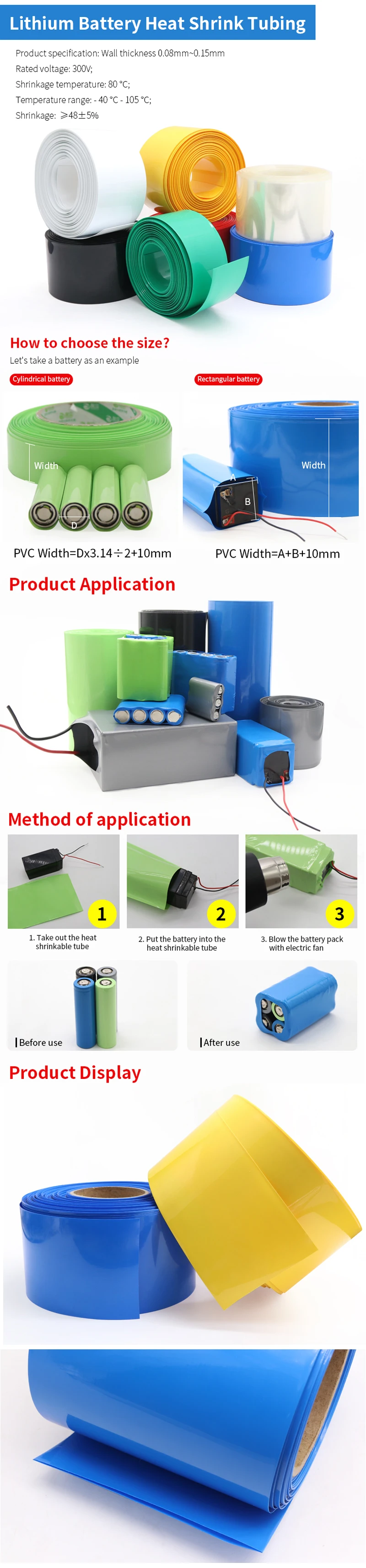 200 мм ширина 18650 литиевая батарея пленка обертка ПВХ термоусадочная трубка Покрытие оболочки Изолированная кабельная втулка защита синий черный