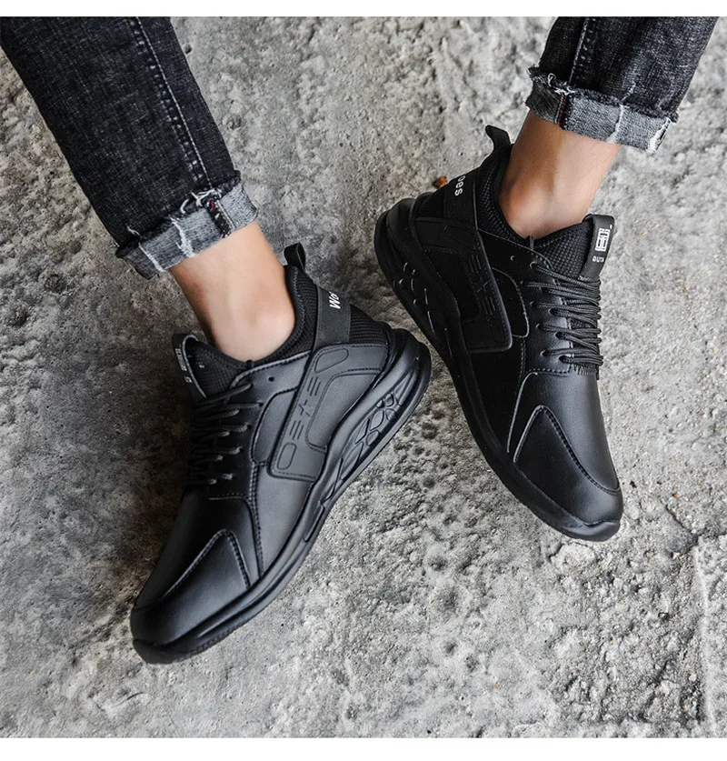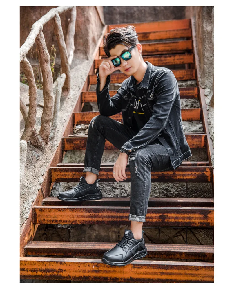 Мужские защитные ботинки, черные плетеные ботинки без застежки, лег...