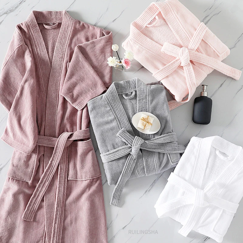 Махровый банный халат, из 100% хлопка, длинный, впитывающий, легкий, Вафельное полотенце