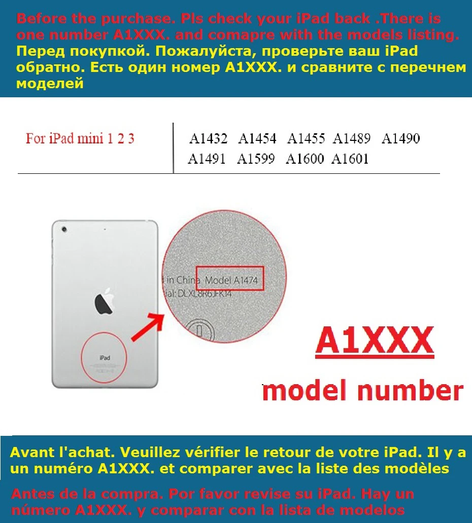 Тонкий чехол-книжка для iPad mini, чехол 7,9 дюйма, умная флип-подставка mini 2 3 A1432 A1490, защитный чехол из поликарбоната для iPad mini 2 mini 3, чехол