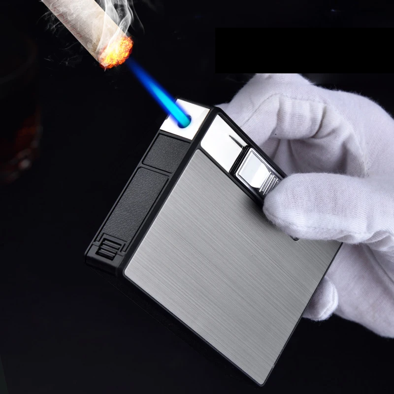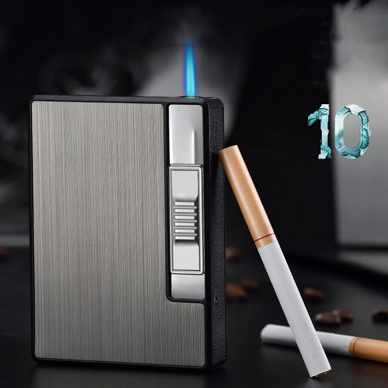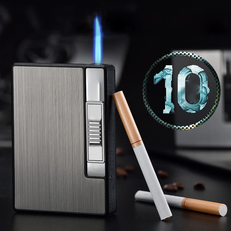 10 шт., автоматический чехол для сигарет, емкость зажигалки, газовая зажигалка, турбо металлическая прикуривательная коробка для мужчин, хороший подарок