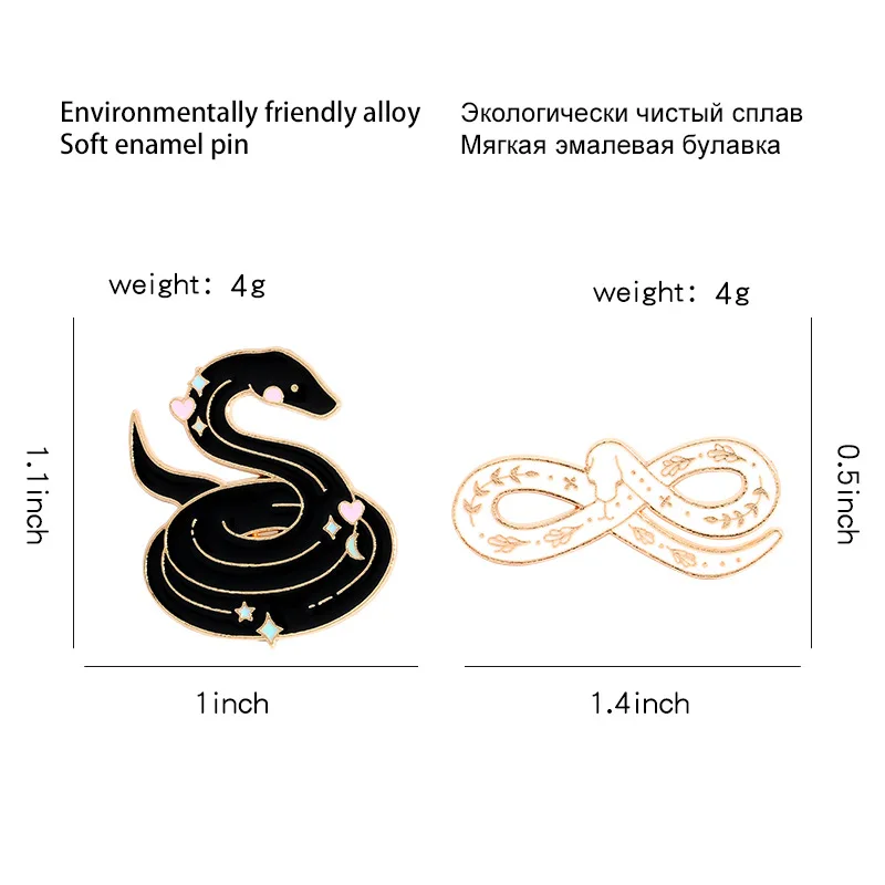 Черно-белая эмалированная булавка в виде змеи из мультфильма, брошь...