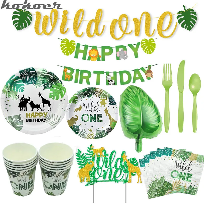 Детский душ Wild One Birthday Jungle тематические вечерние для вечеринки в стиле сафари вечерние тарелки баннерные чашки Вечерние Декорации для маленьких мальчиков и девочек мой первый год Pa