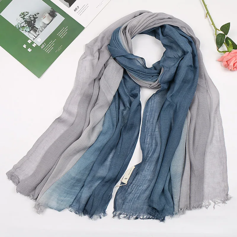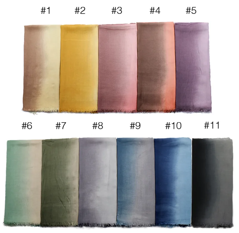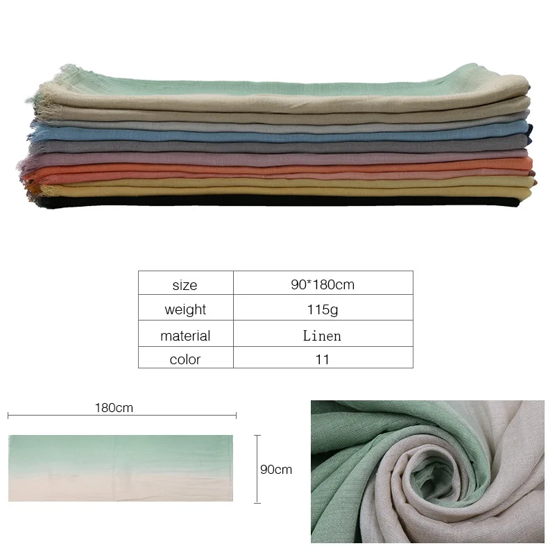 2020, испанская мода, гладкая Омбре, плиссированная льняная шаль, шарф, высококачественный градиентный пашминовый палантин, мусульманские хиджабы