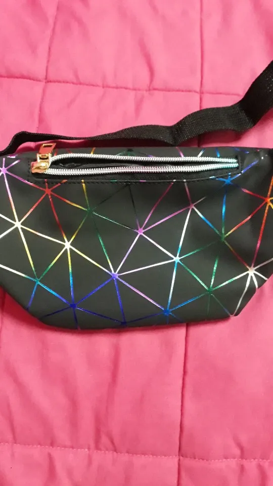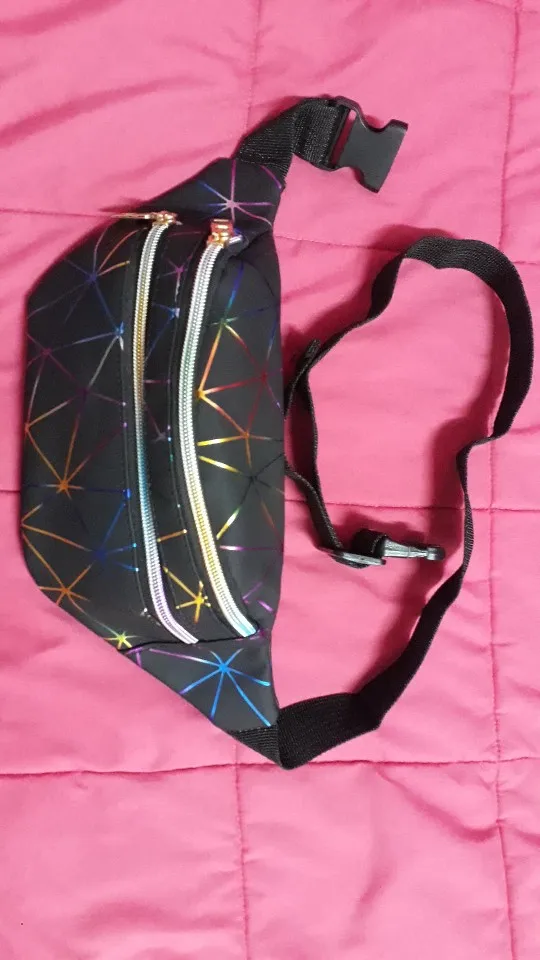 Поясная Сумка для женщин, забавный розово-серебристый женский кошелек с геометрическим узором, лазерная нагрудная Сумочка для телефона, 2021