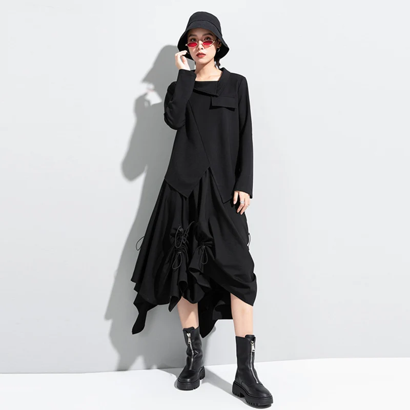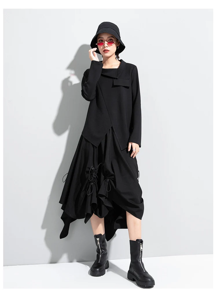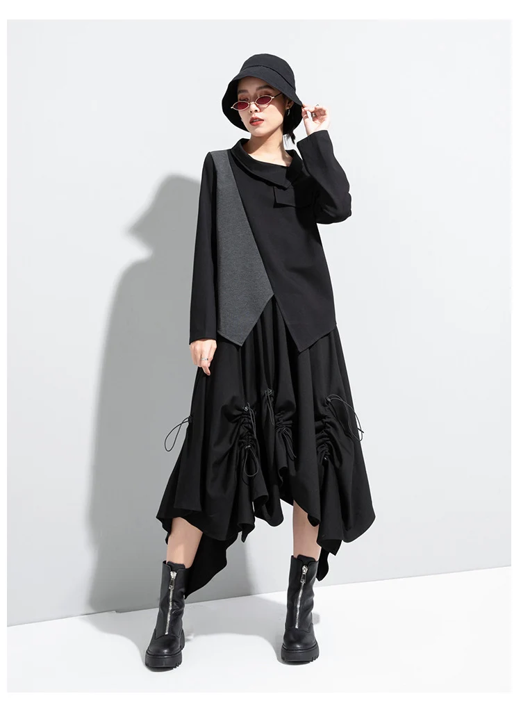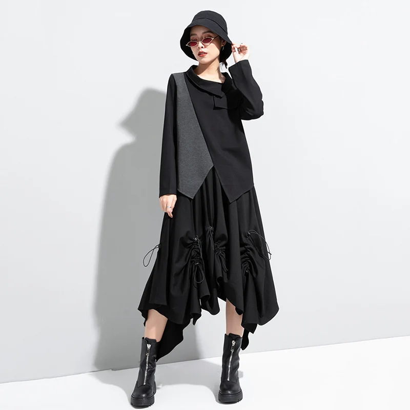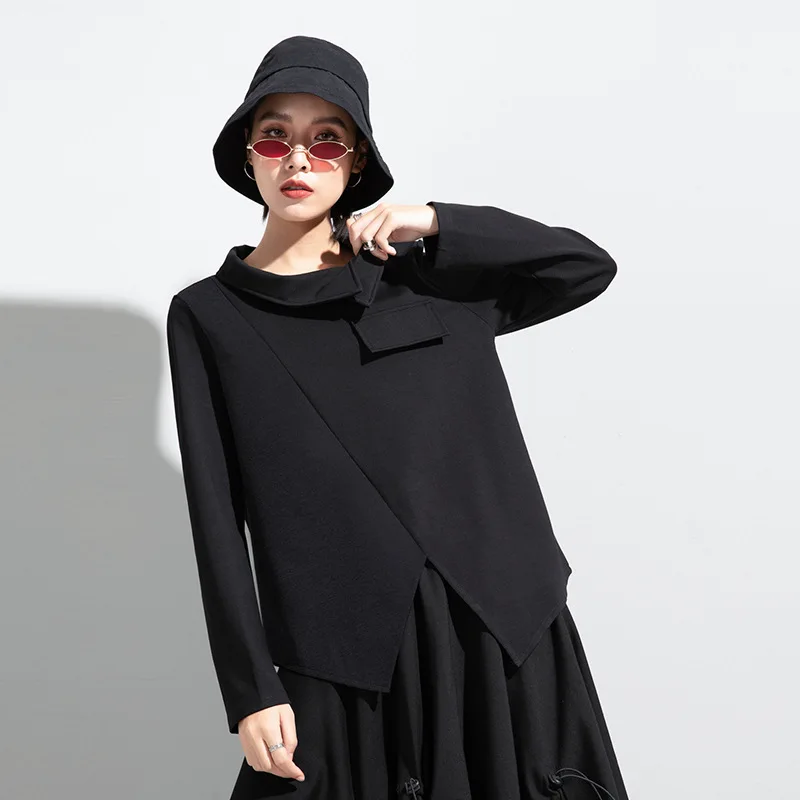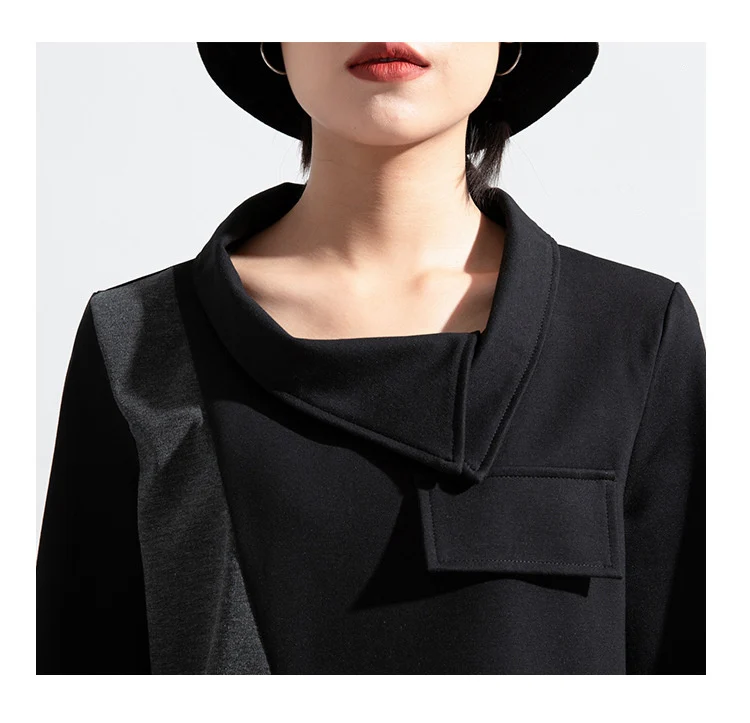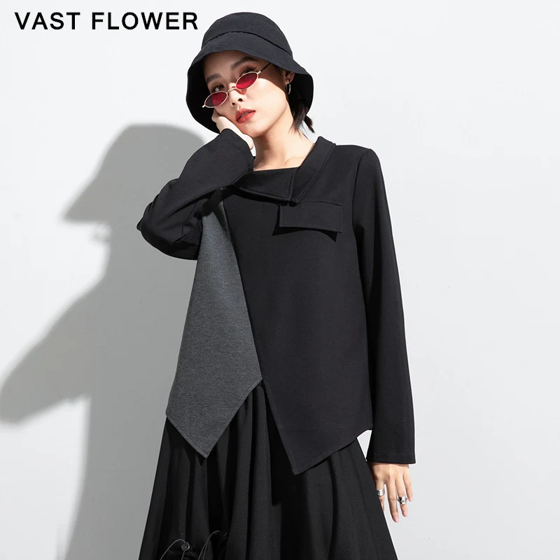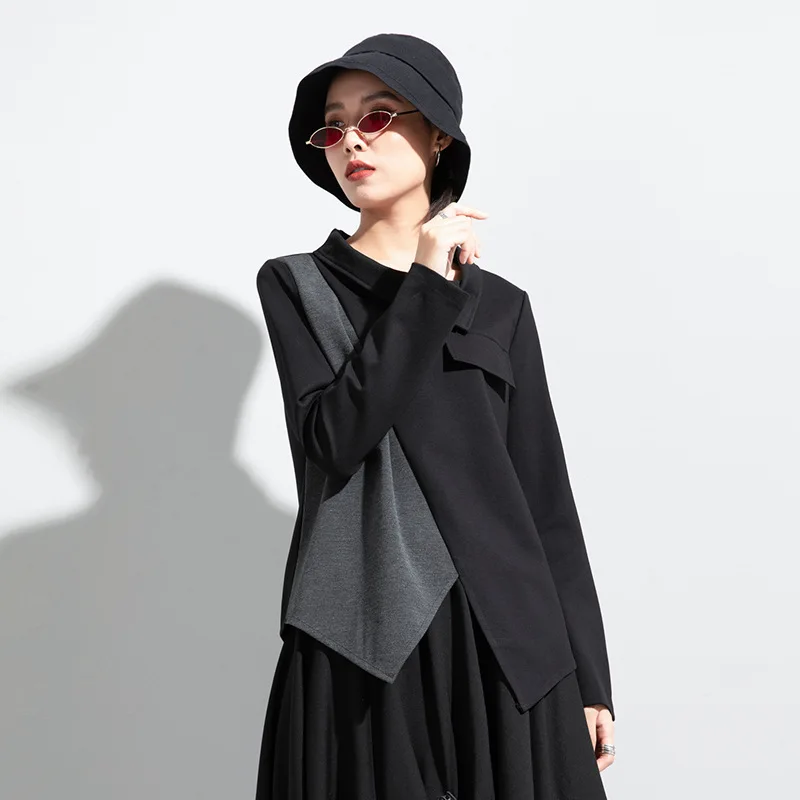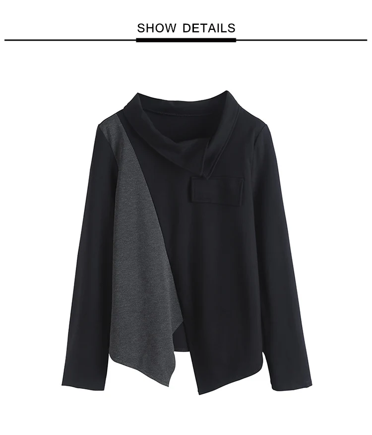 Женская футболка с длинным рукавом, асимметричная, в стиле пэчворк, с отложным воротником, свободная, повседневная, весна-осень, 2021